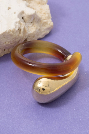- This ring adds a modern metallic capped acrylic wrap open band style. Immerse yourself in the world of understated glamour as this ring effortlessly exudes timeless appeal.