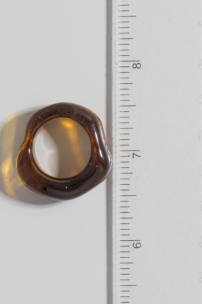 - This ring showcases a timeless warped shape amber acrylic band style. Unveil modern elegance with this subtly intricate ring.