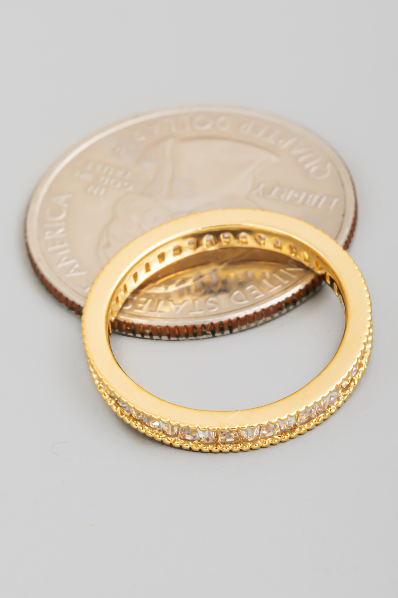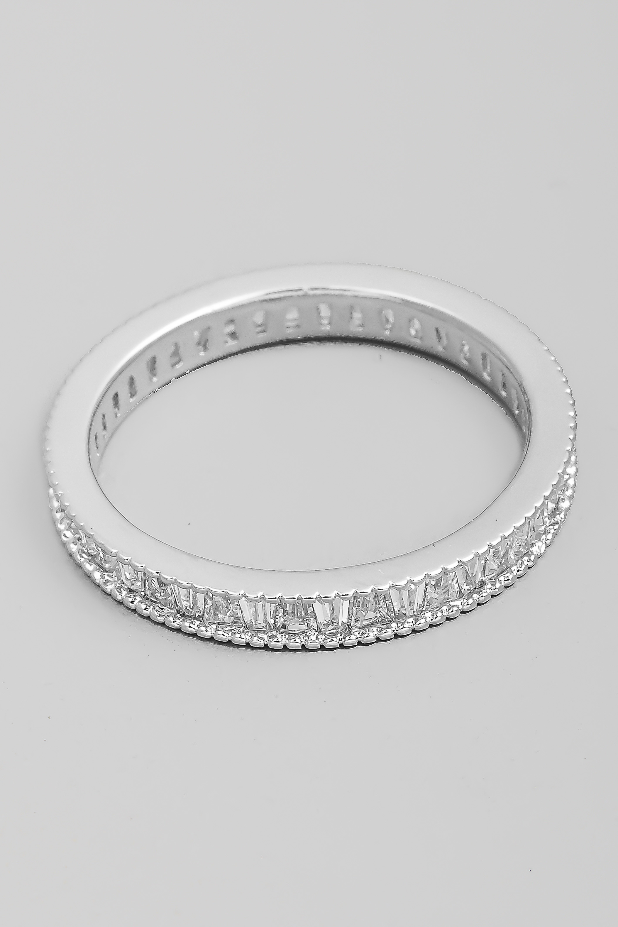 - This Ring displays a fashionable pave cubic zirconia baguettes band ring style. Experience refined sophistication with this understated yet stylish piece.