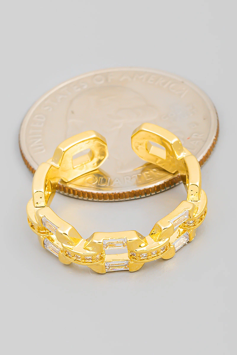 Gold Dipped Cz Pave Row And Star Open Band Ring