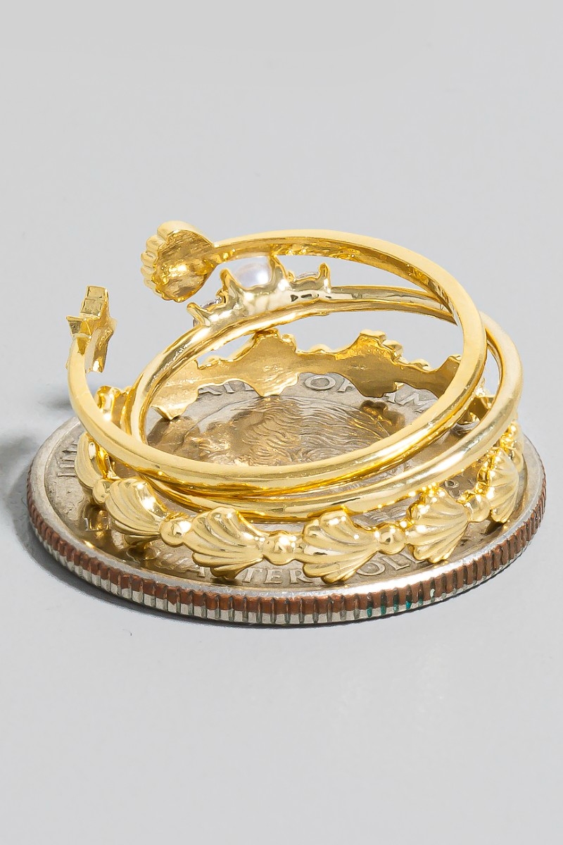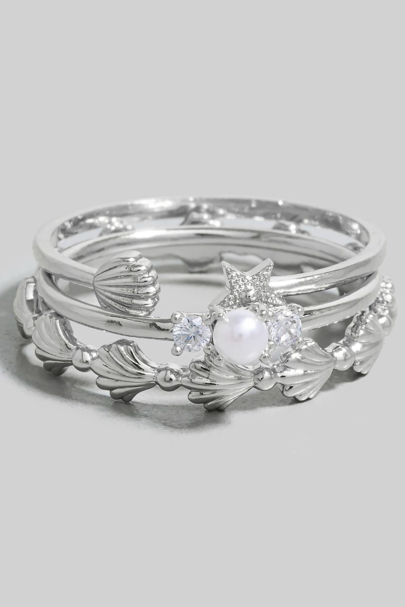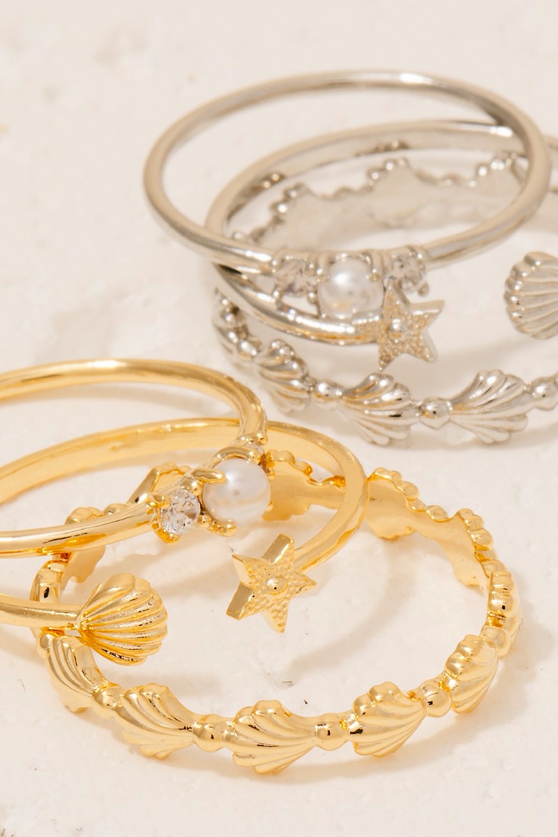 - This ring set adds a modern 3pc pearl and seashells station band rings set style. Savor the craftsmanship that goes beyond the ordinary, as this ring set effortlessly captivates attention.