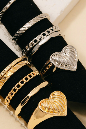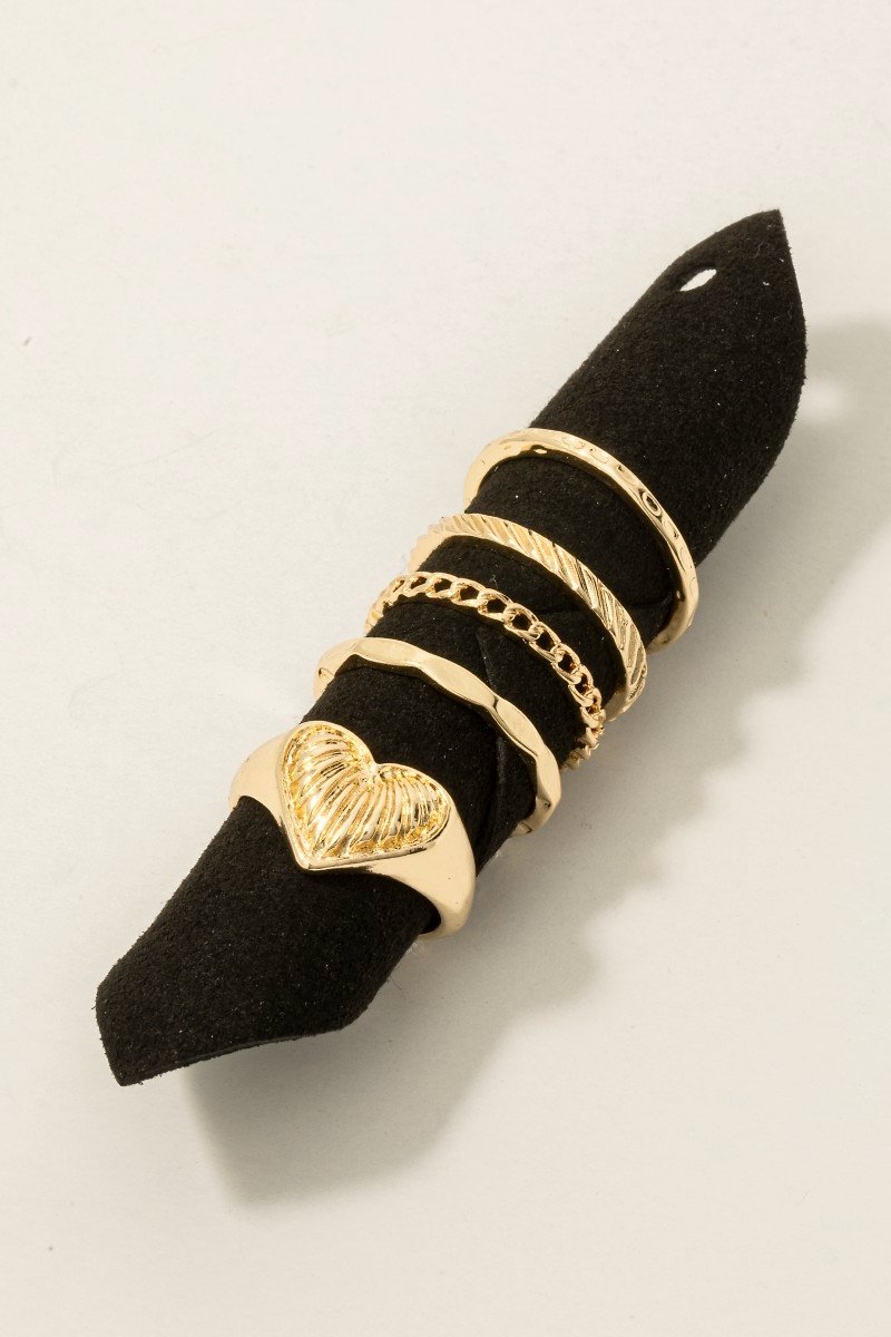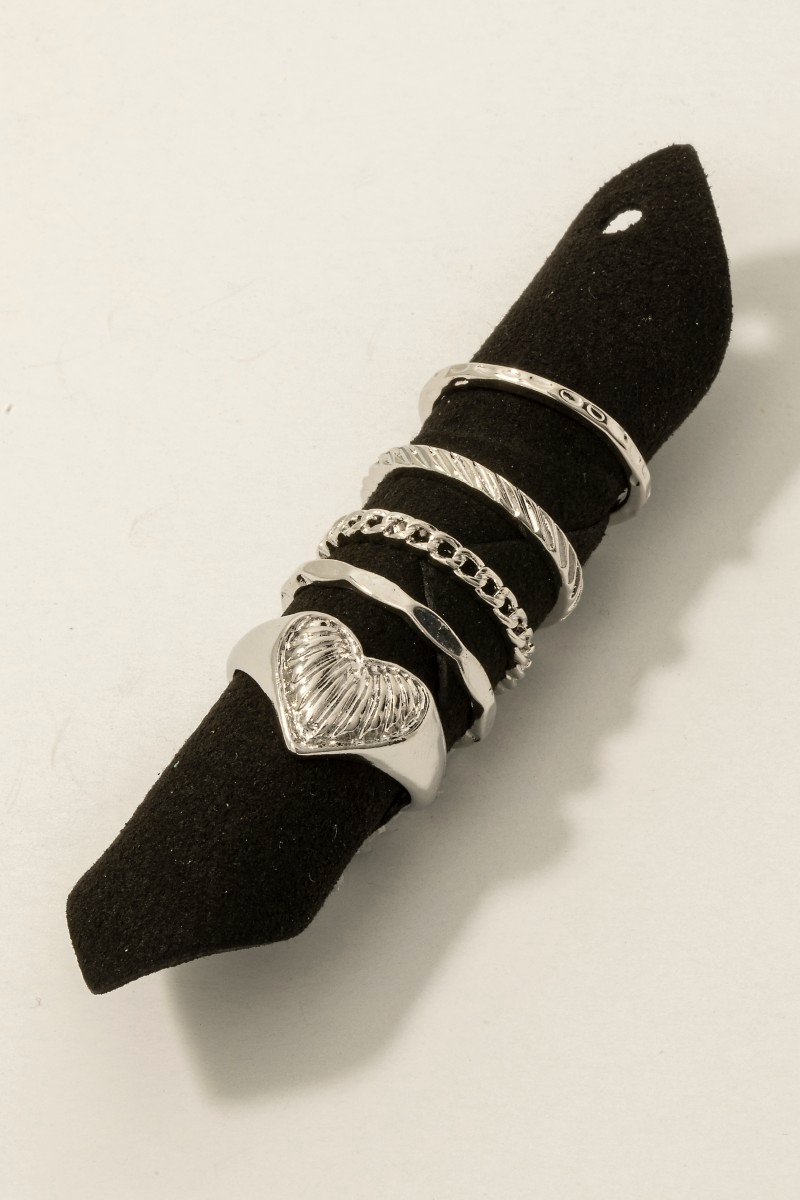 • This ring set introduces a unique 5pc chains and heart signet band rings set style. Savor the allure of detailed craftsmanship in this exquisite ring set.