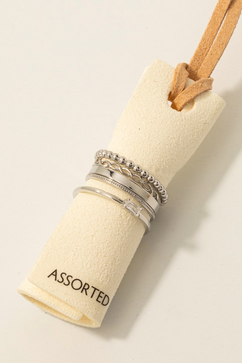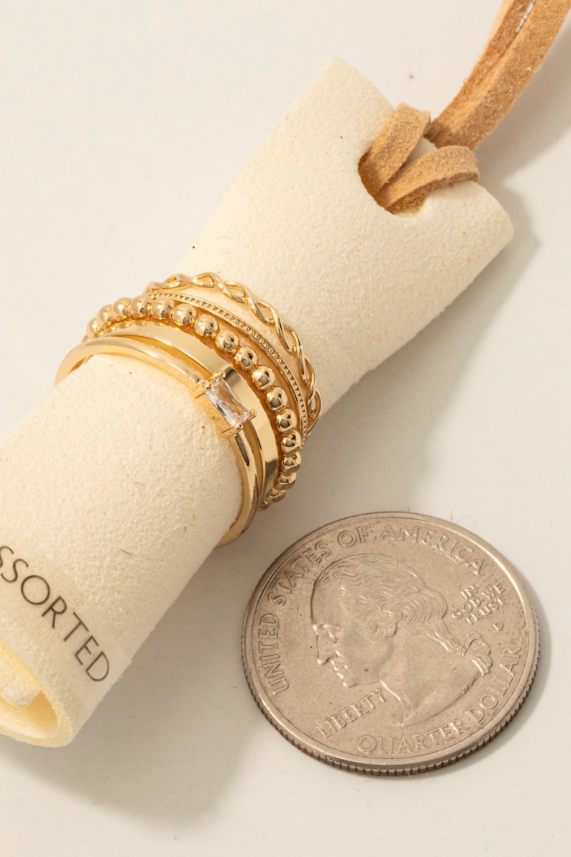 - This ring set introduces a unique 5pc mixed band rings set style. Unveil modern elegance with this subtly intricate ring set.