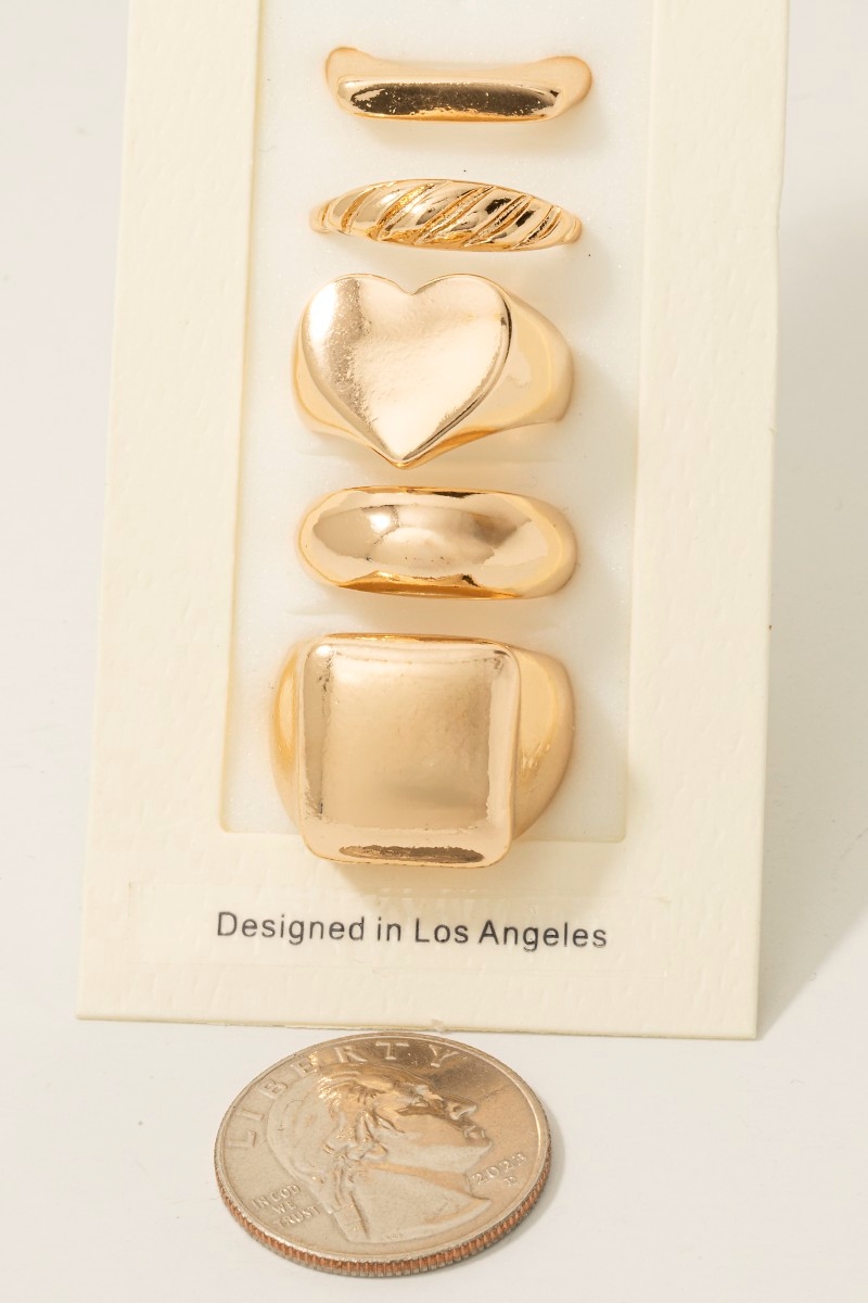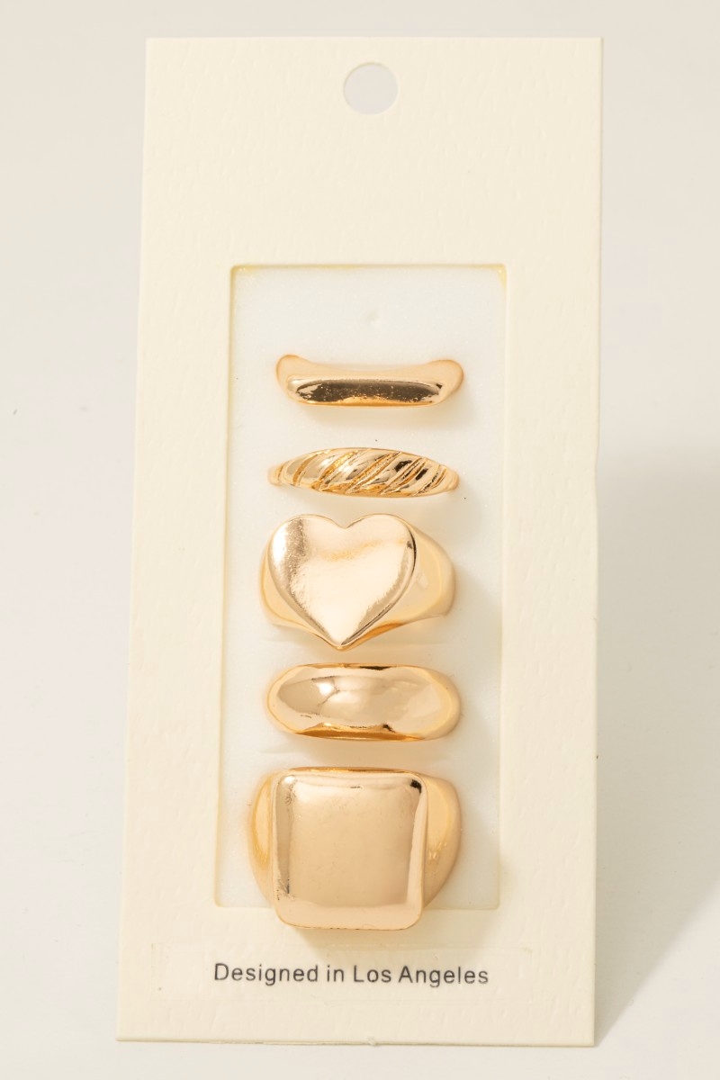 - This ring set introduces a stunning 5pc mixed signet band rings set style. Experience the joy of accessorizing with this piece that effortlessly combines versatility and charm.