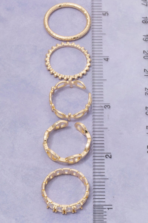 - This ring set brings a unique five piece assorted rings set style. Witness the perfect fusion of style and functionality as this ring set effortlessly complements your lifestyle.