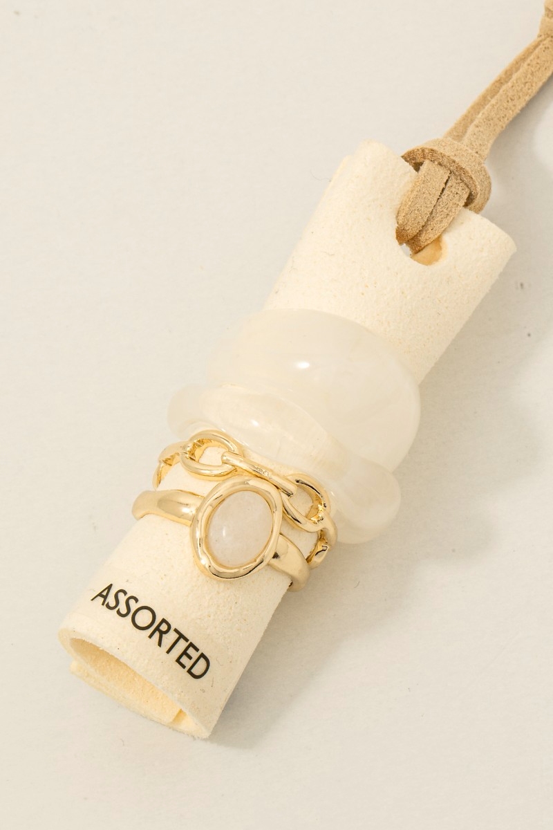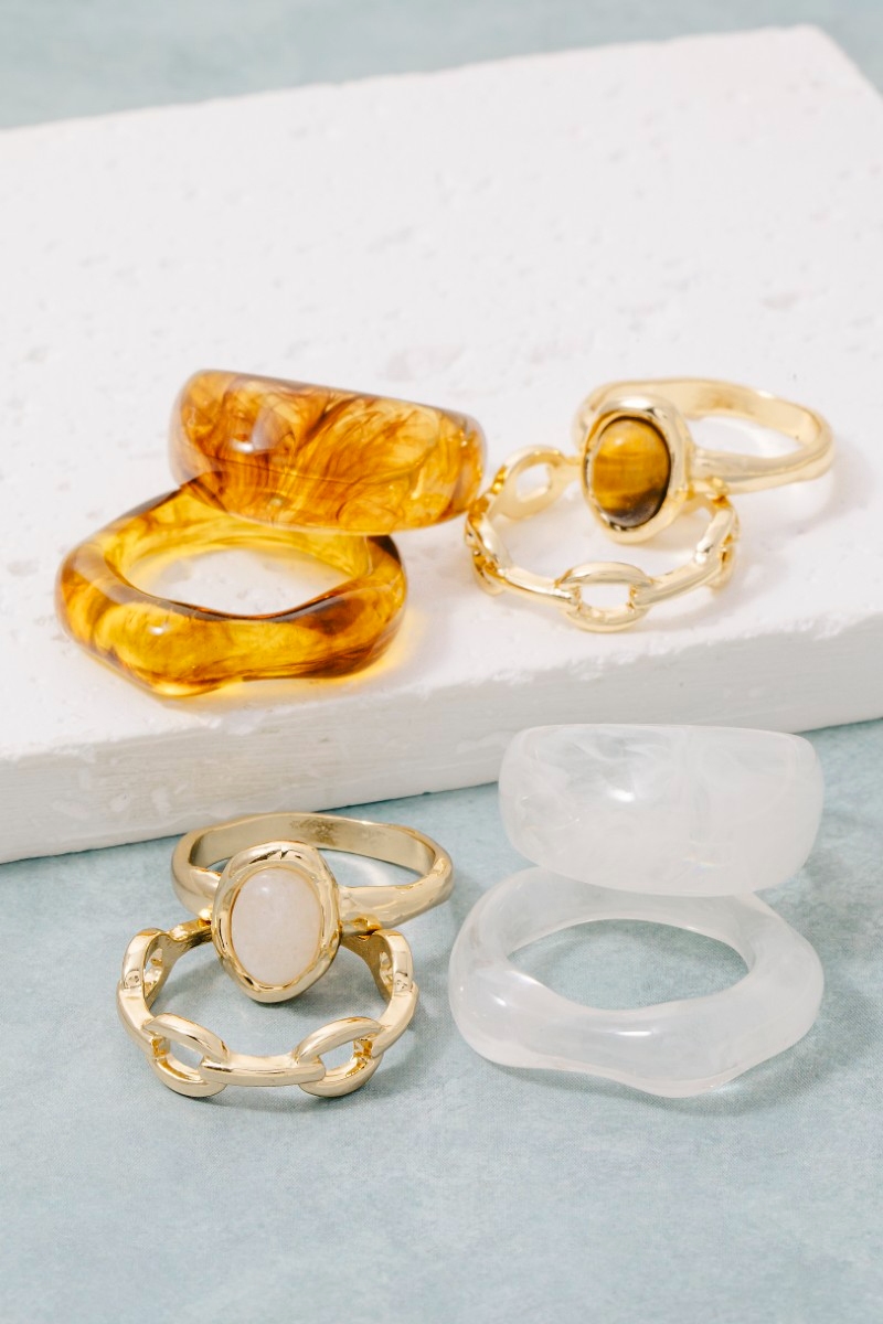 - This ring set displays a vibrant mixed acetate and metallic band rings set style. Redefine your look effortlessly with this standout, on-trend piece.