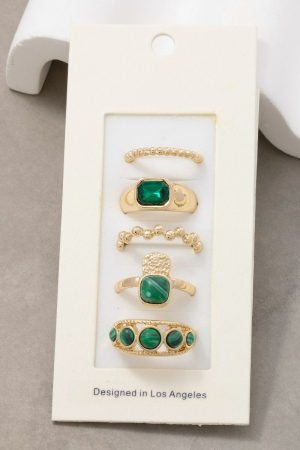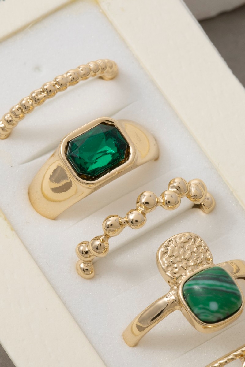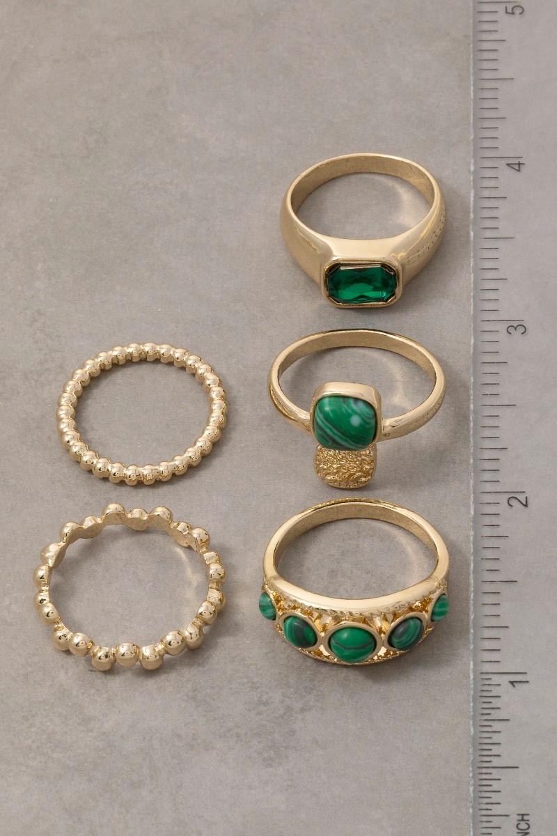 • This ring set brings a stunning mixed green stones 5pc band rings set style. Experience refined sophistication with this understated yet stylish piece.