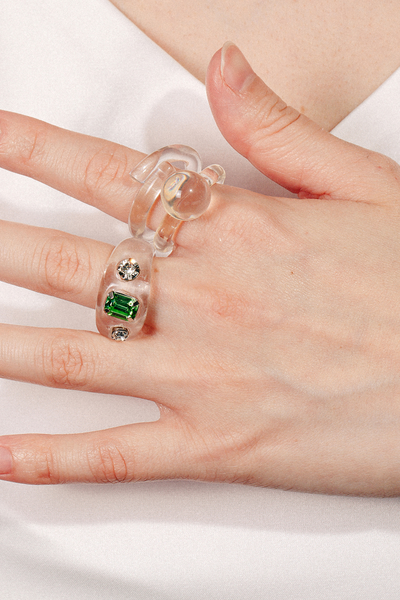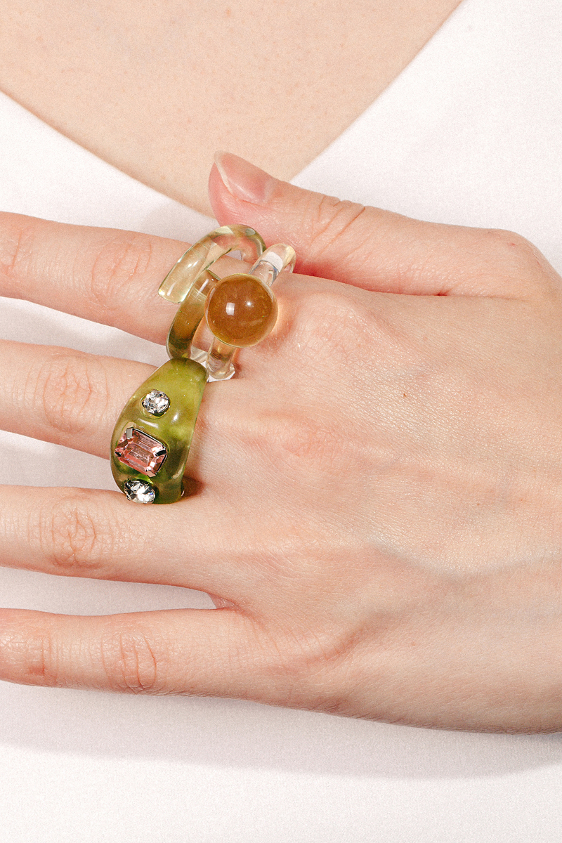 Rhinestone Studded Triple Row Ring