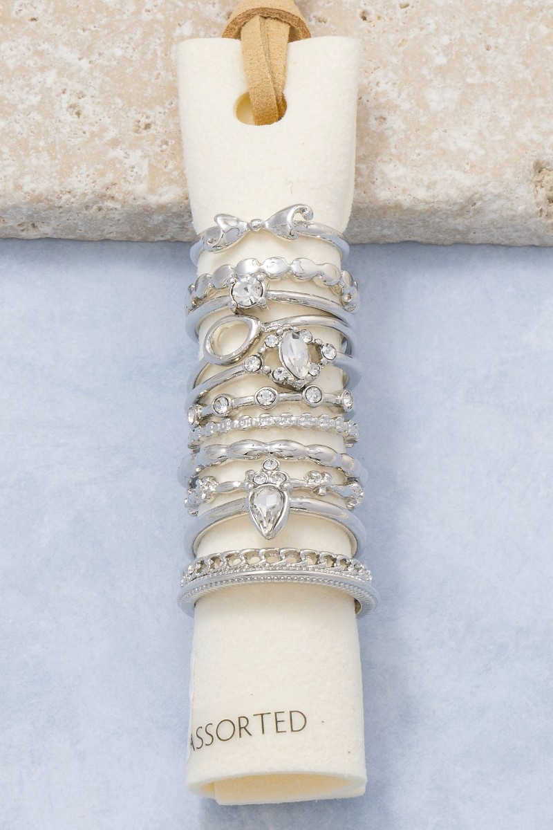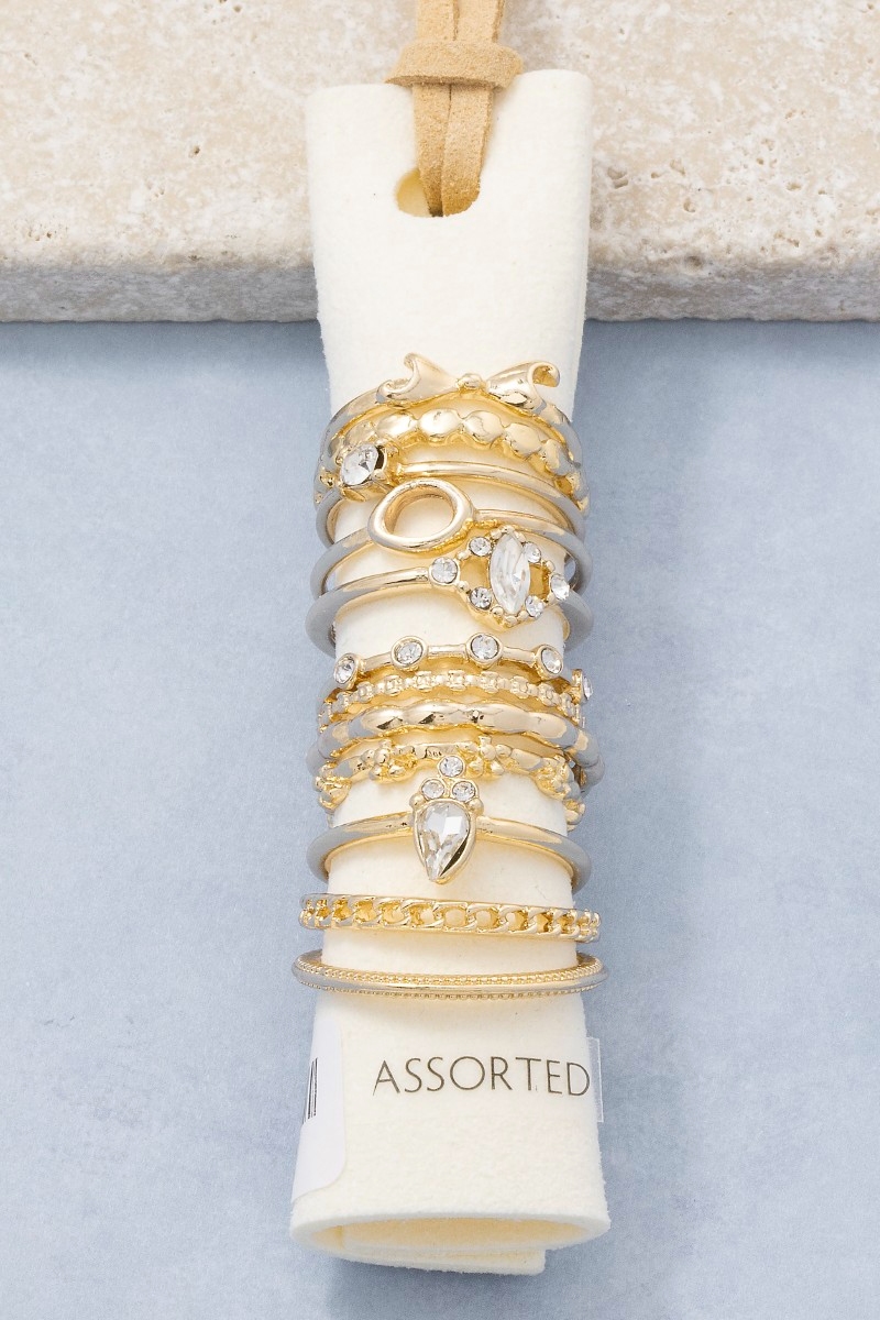 Assorted Ten Piece Metallic Ring Set