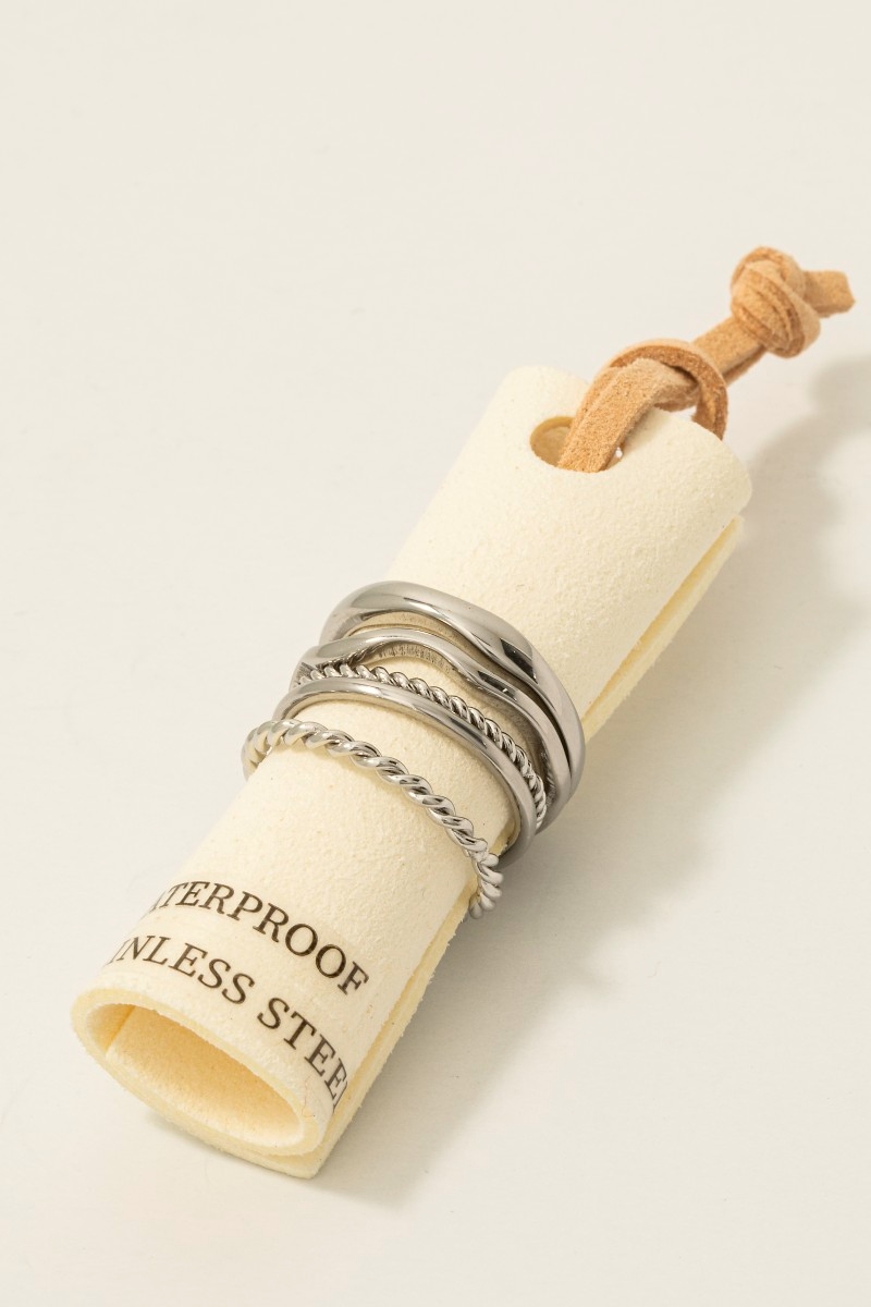 • This ring set brings a luxurious 5pc stainless steel mixed band rings set style. Explore a blend of classic charm and contemporary flair.