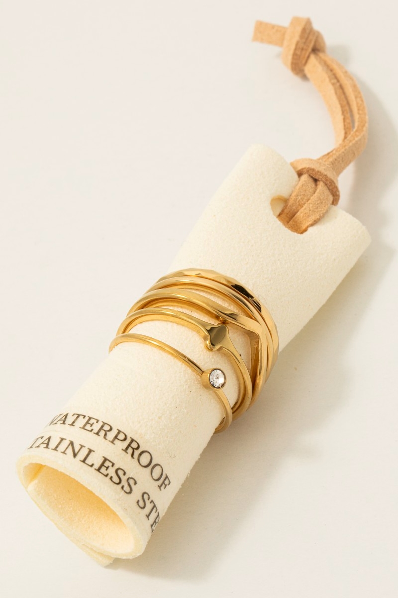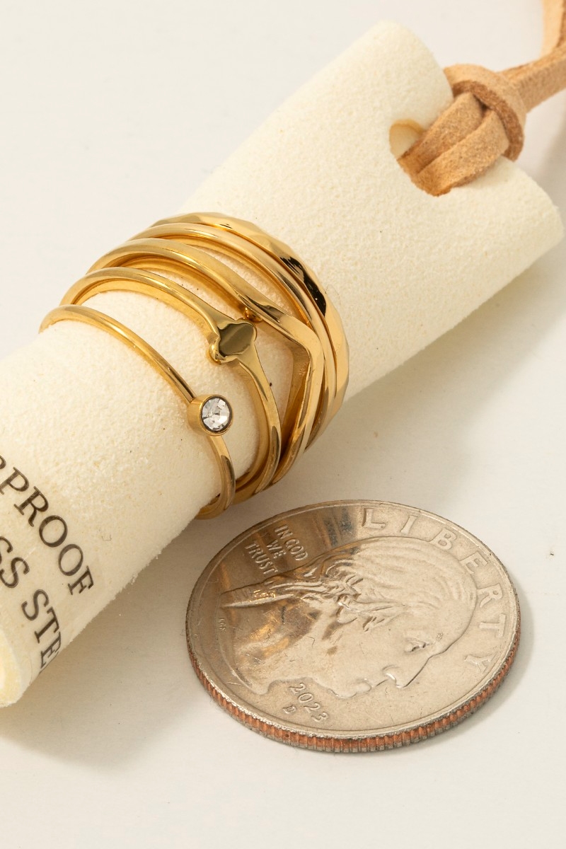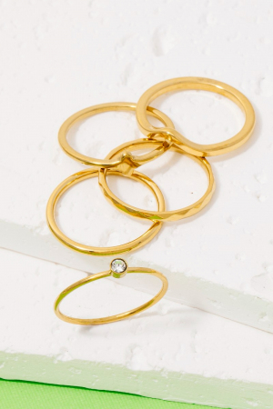 - This ring set adds a modern assorted 5pc stainless steel band rings set style. Elevate your ensemble with this ring set that effortlessly captures the essence of refined fashion.