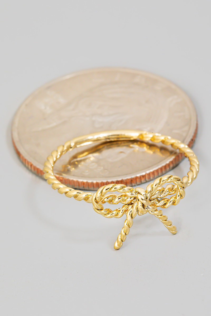 - This ring brings a stunning twisted metallic ribbon bow band style. Discover the perfect balance of subtlety and flair as this accessory effortlessly completes your look.