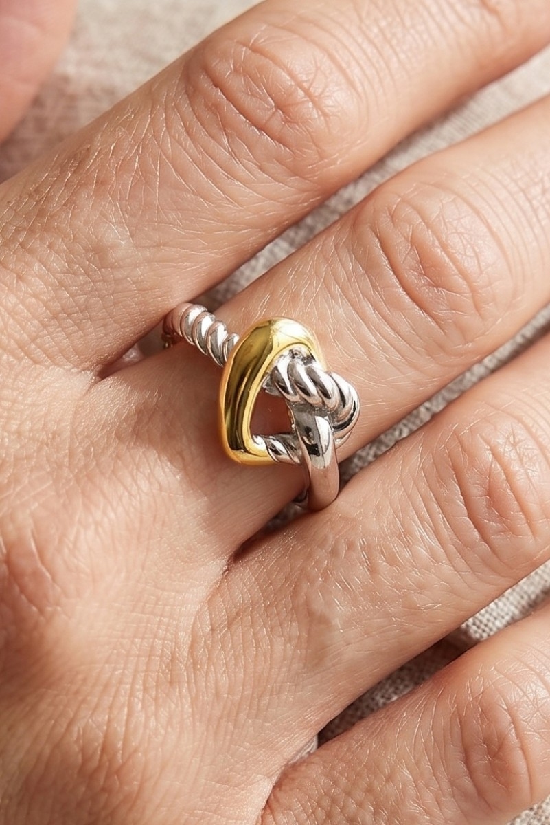 - This ring brings a luxurious two-tone twisted knot style. Immerse yourself in fashion finesse with this statement ring.