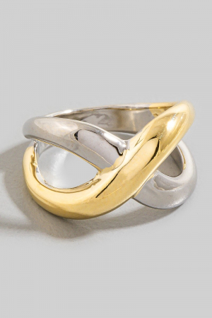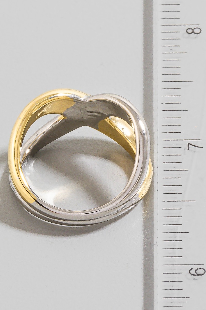 • This ring displays a fashionable two tone x shape band style. Unveil modern elegance with this subtly intricate ring.