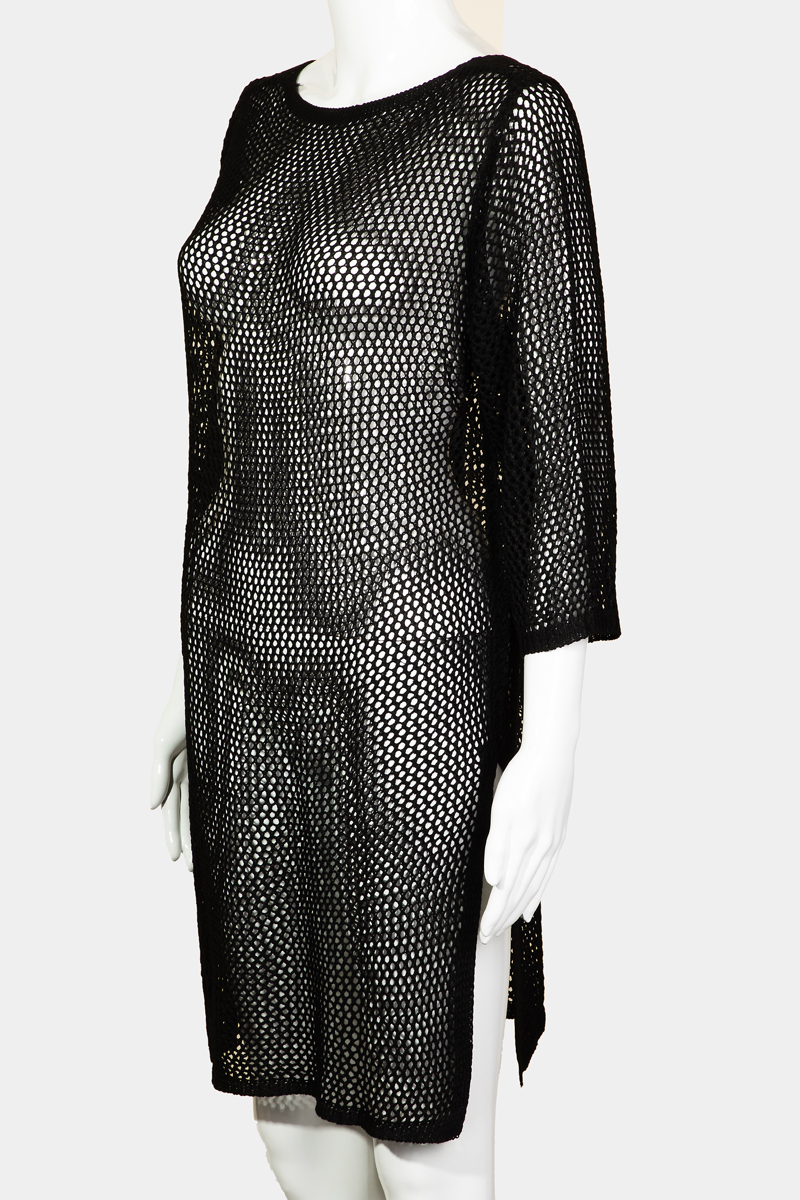 • This accessory showcases a unique long sleeve fishnet cover up style. Immerse yourself in the world of understated glamour as this accessory effortlessly exudes timeless appeal.