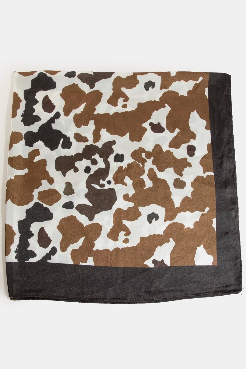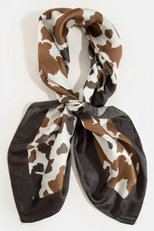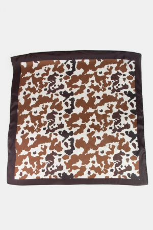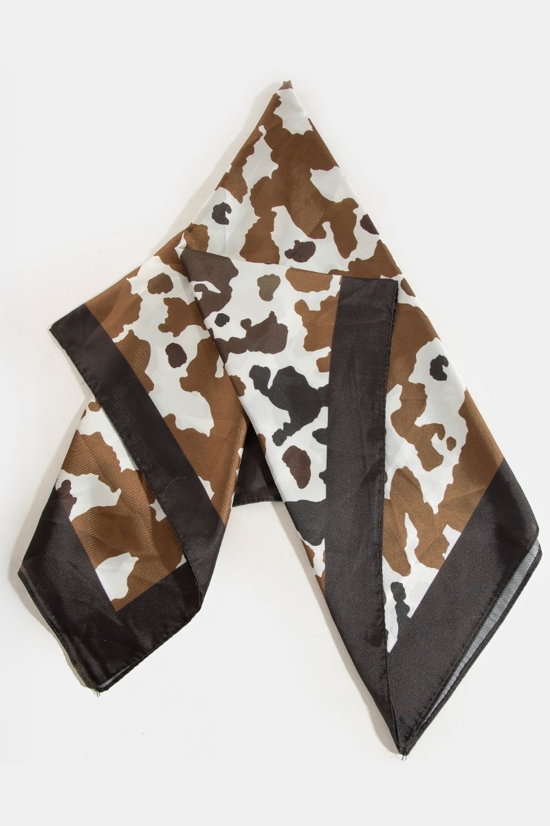 - This scarf brings a stunning black and brown cow print square style. Celebrate the art of accessorizing with this piece that effortlessly encapsulates modern trends.