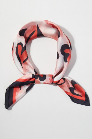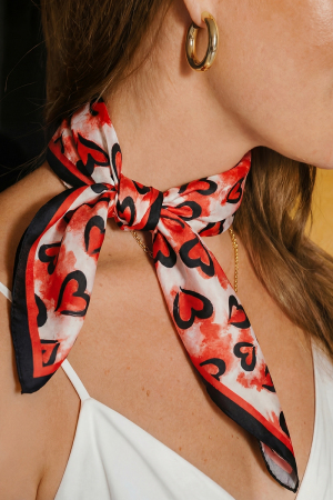 - This scarf brings a stunning black and red heart print square bandana style. Savor the allure of detailed craftsmanship in this exquisite scarf.