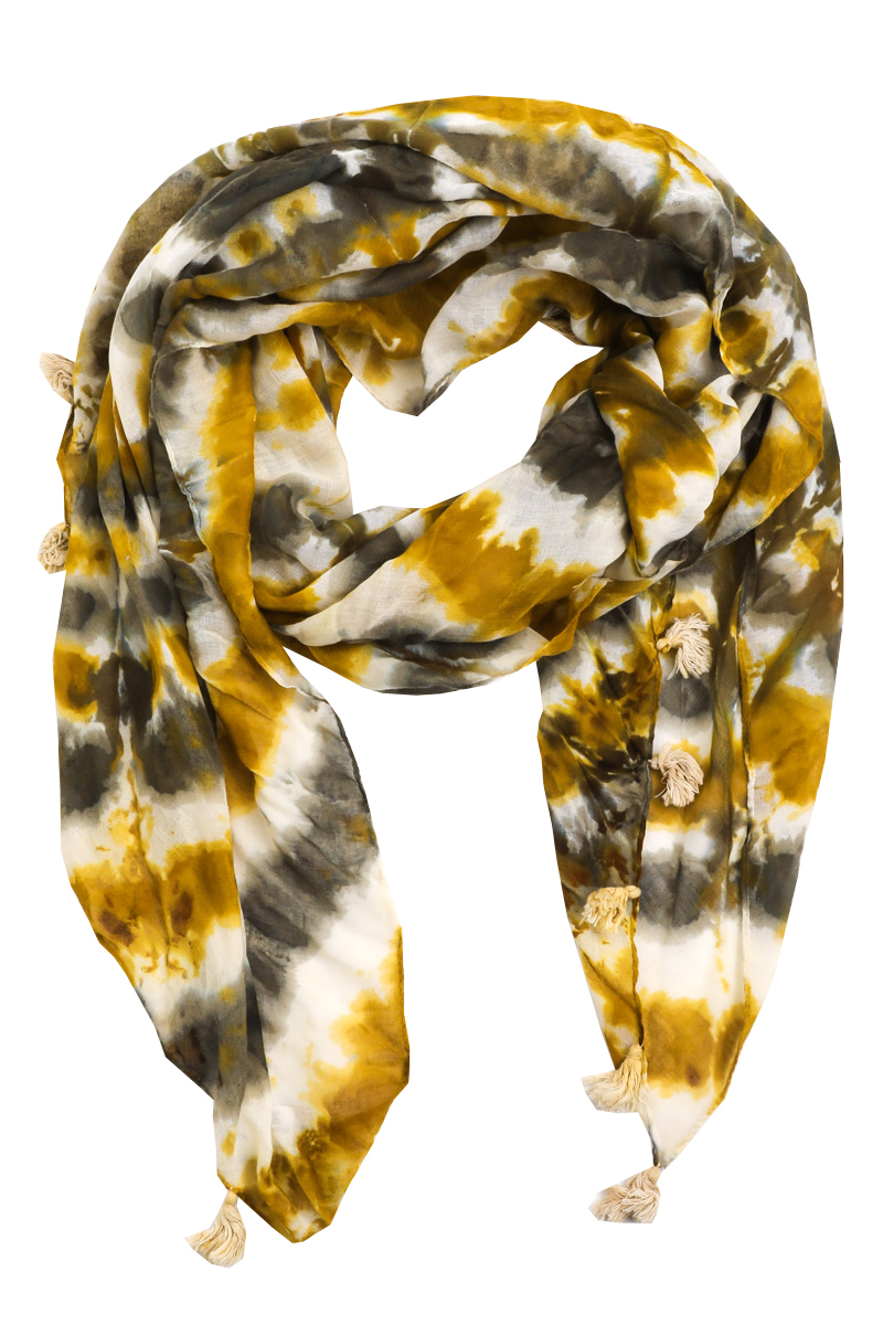 • This scarf is featured in our Tassel and Tie Dye Collection.