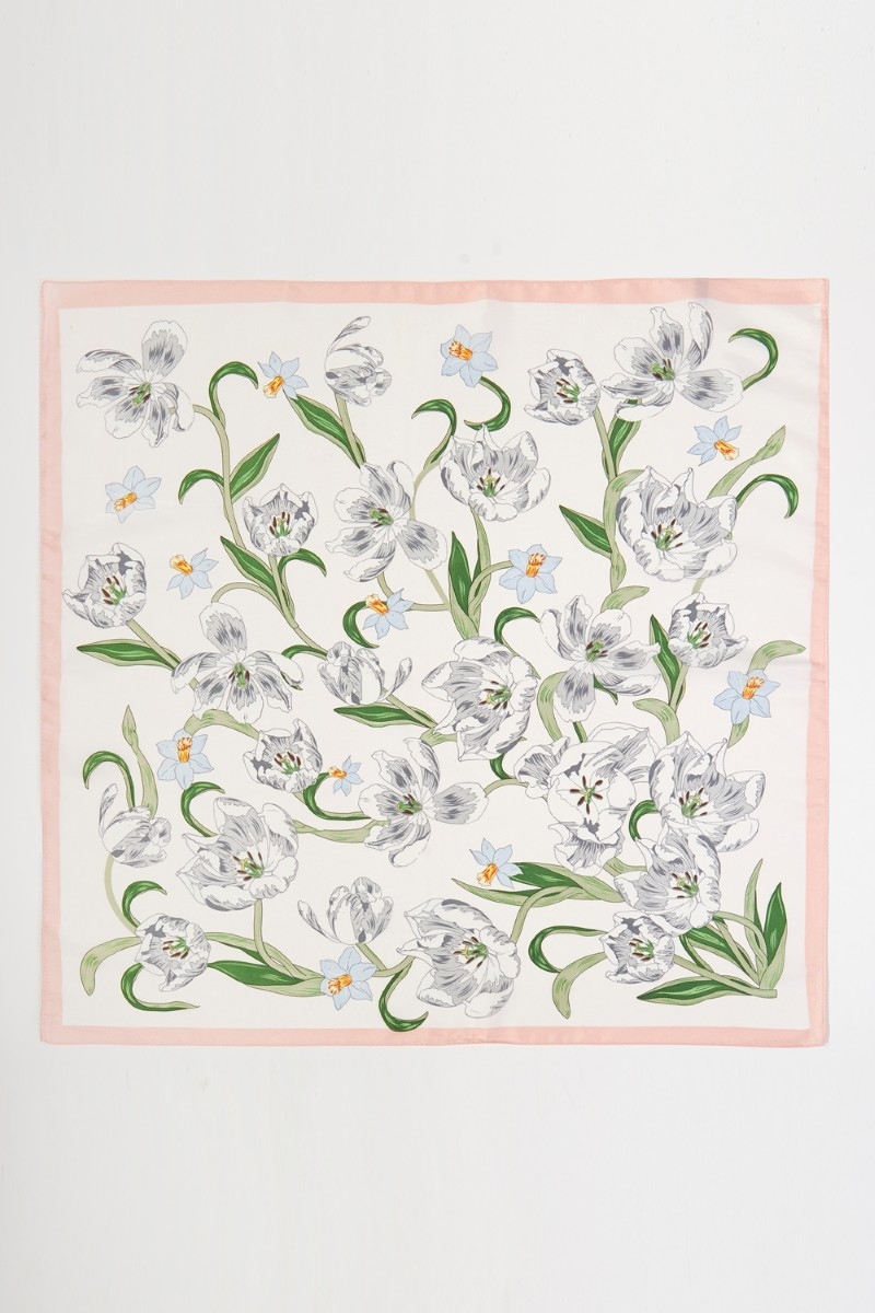 - This scarf showcases a unique botanical flower garden bandana style. Experience a burst of creativity in accessorizing as this piece effortlessly sets the tone for your unique style.