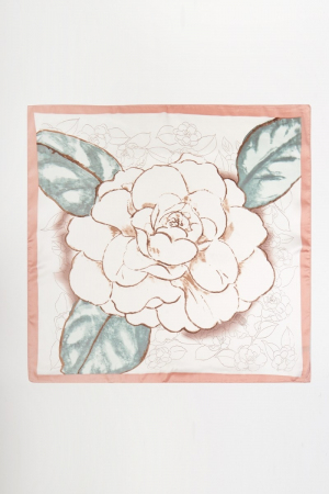 - This scarf introduces a stunning elegant flower print bandana style. Revel in the intricate design that effortlessly distinguishes this scarf, making it a statement piece.