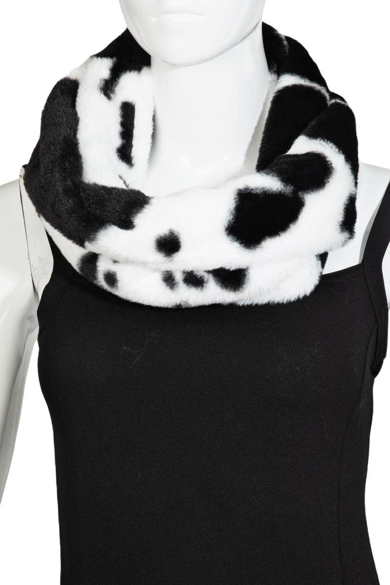 - This infinity scarf brings a luxurious cowhide print style. Embark on a journey of sartorial refinement as this infinity scarf effortlessly complements your fashion sense.
