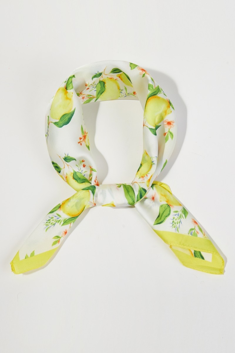 - This scarf brings a stunning lemon fruit print bandana style. Step into a world of refined taste as this scarf effortlessly refines the details of your outfit.