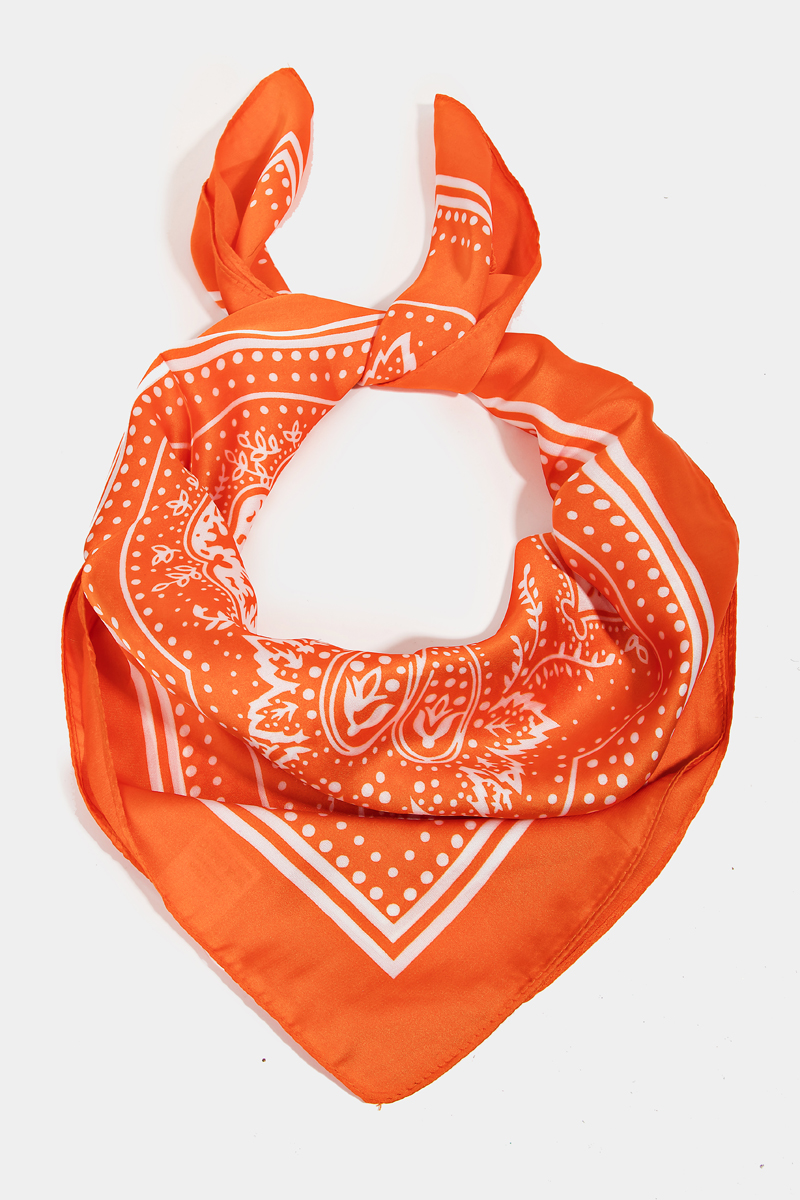 - This scarf showcases a timeless light paisley design square bandana style. Unveil modern elegance with this subtly intricate scarf.