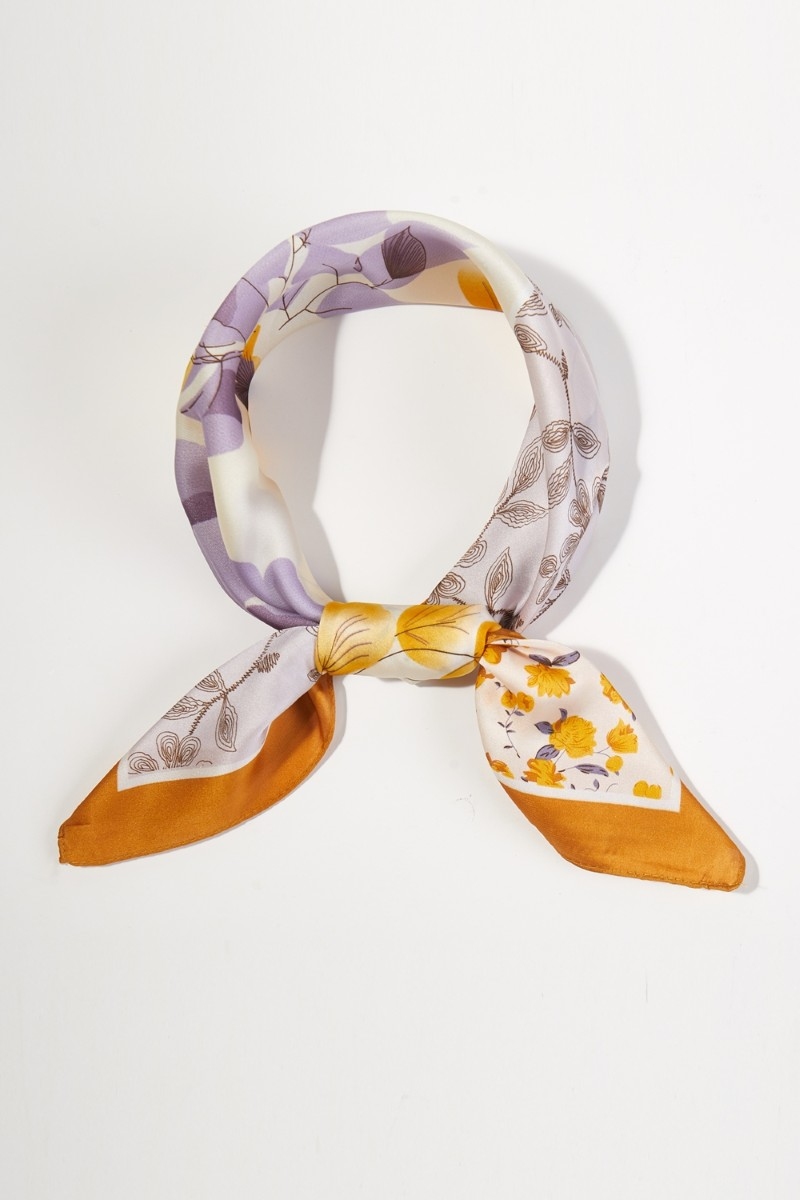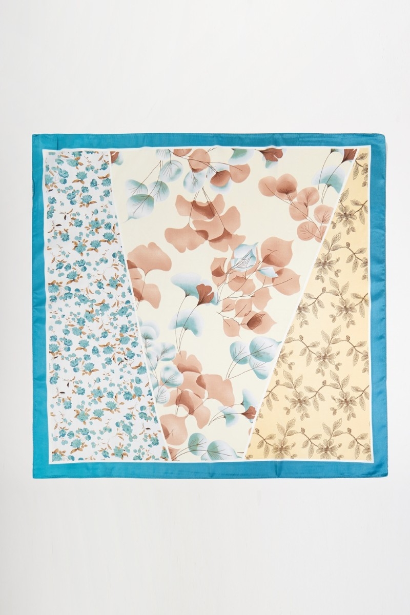 - This scarf showcases a timeless three pattern flower print bandana style. Redefine your look effortlessly with this standout, on-trend piece.