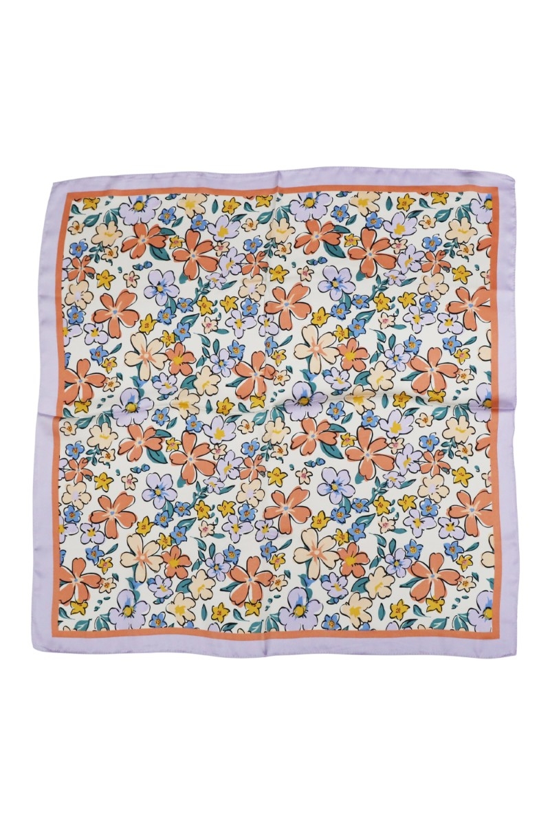 - This scarf introduces a stunning multi flower print bandana style. Explore a blend of classic charm and contemporary flair.