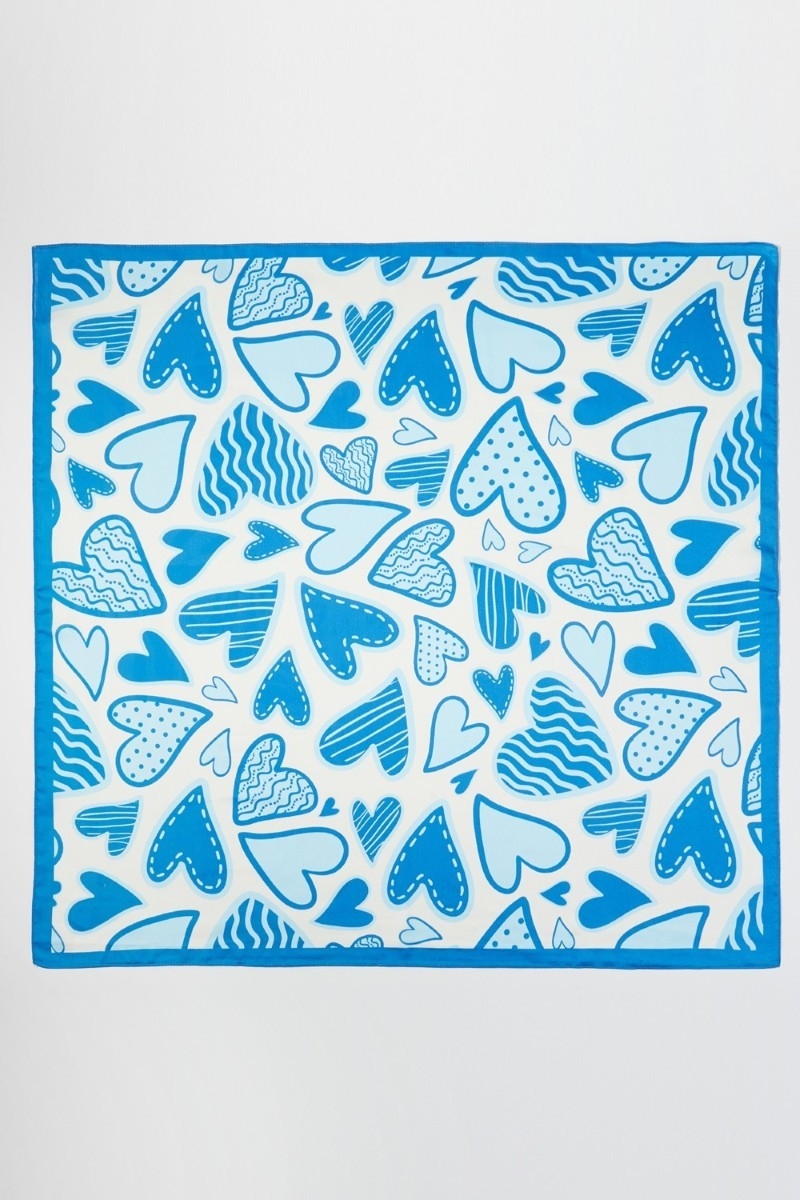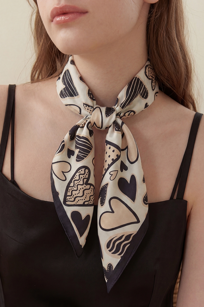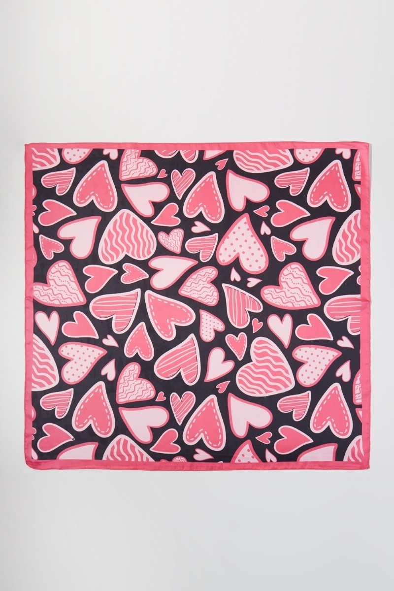 - This scarf introduces a unique multi heart shape print square bandana style. Witness the perfect fusion of style and functionality as this scarf effortlessly complements your lifestyle.