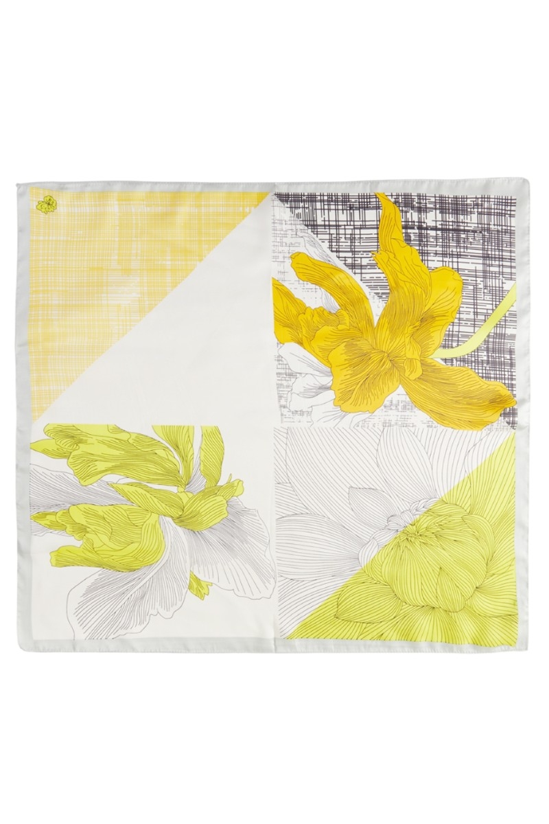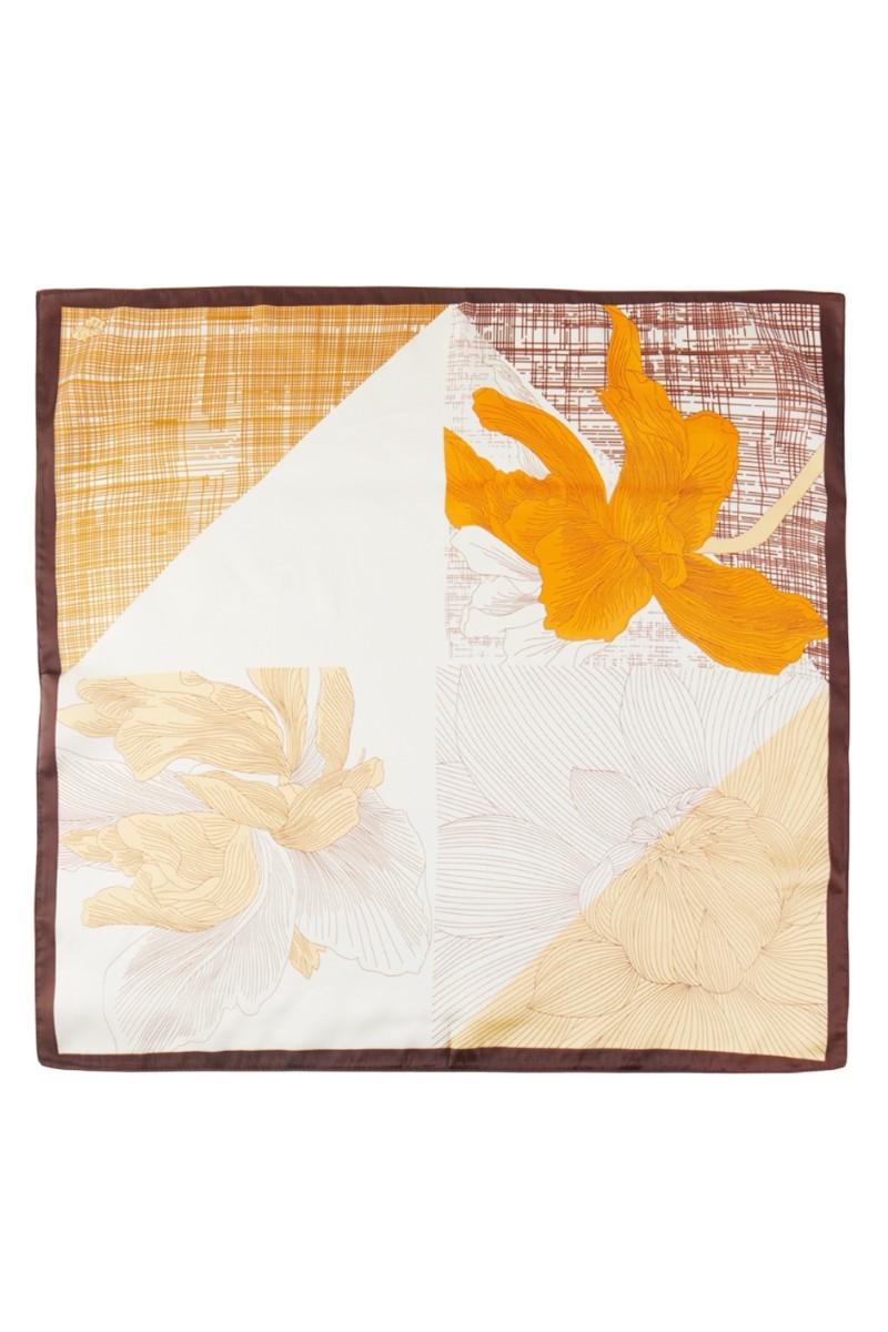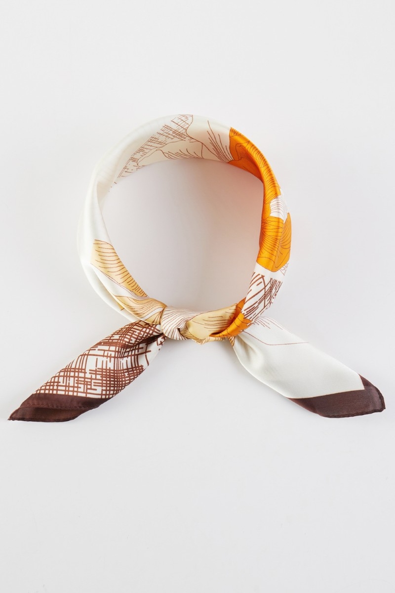 - This scarf features a fashionable pen art flower print style. Savor the craftsmanship that goes beyond the ordinary, as this scarf effortlessly captivates attention.