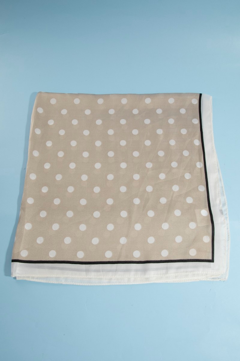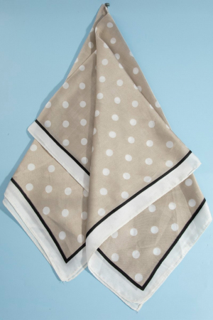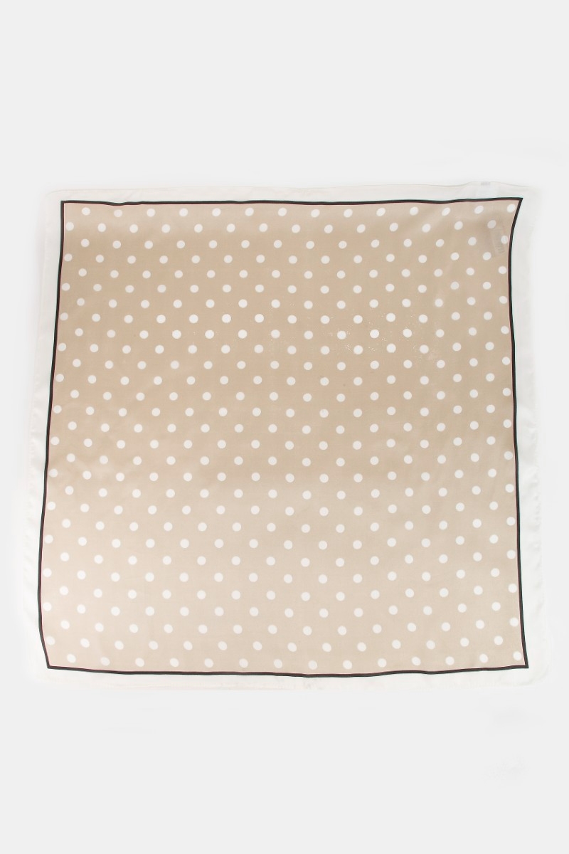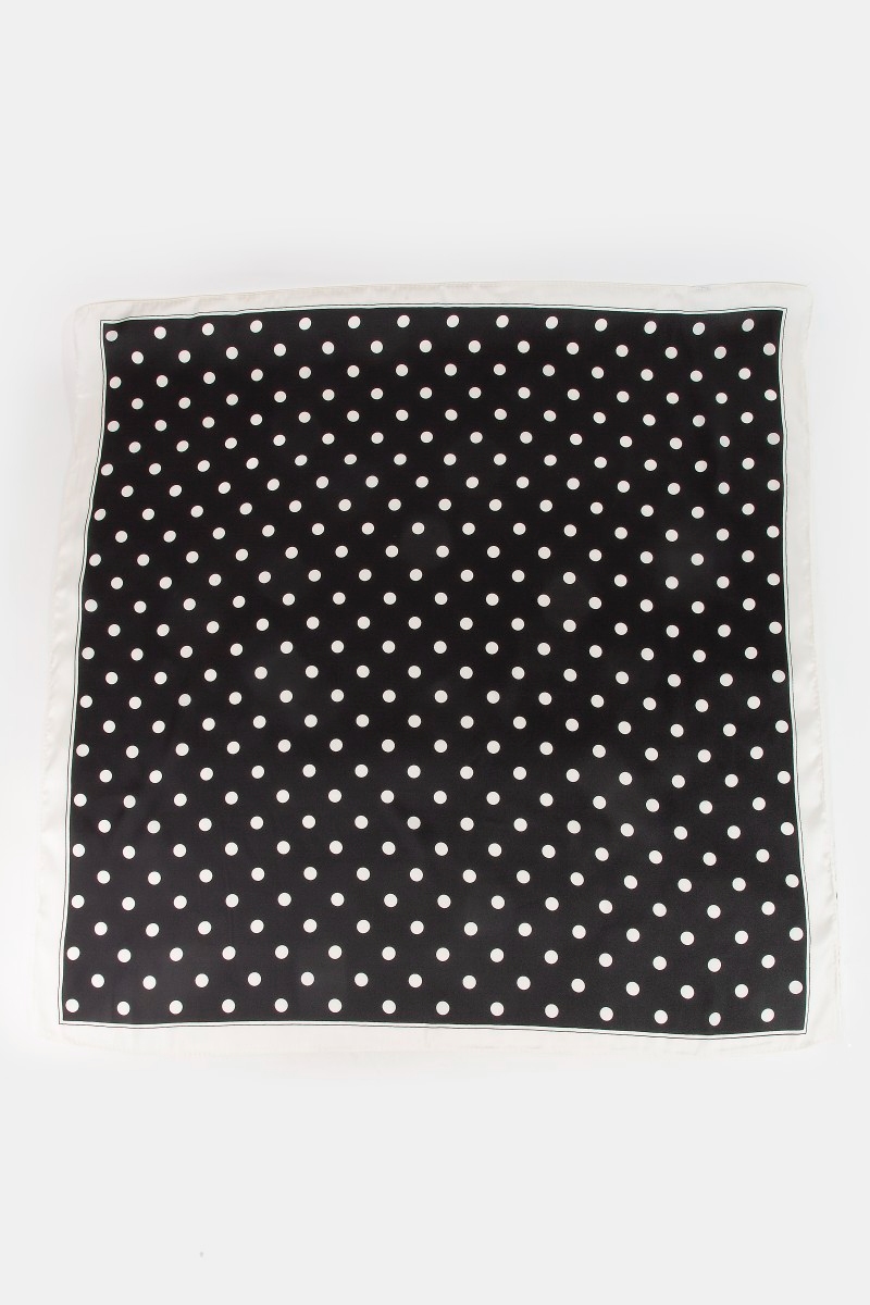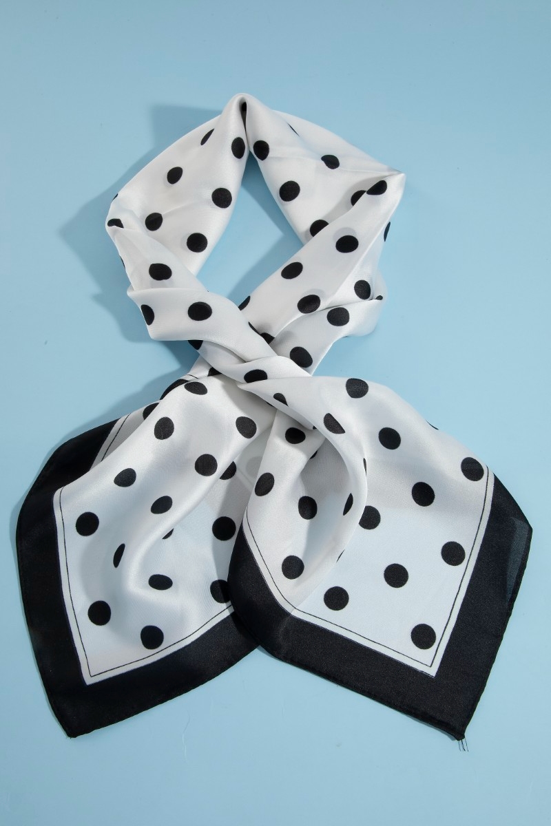 - This scarf displays a vibrant polka dot square bandana style. Elevate your ensemble with this scarf that effortlessly captures the essence of refined fashion.