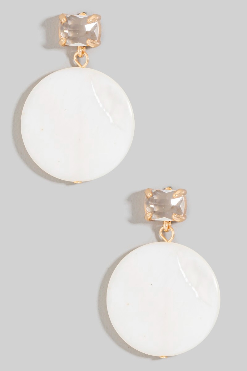 • This pair of dangle earrings brings a stunning baguette stud and shell disc style. Immerse yourself in the details of design, as this pair of dangle earrings effortlessly becomes a conversation starter.