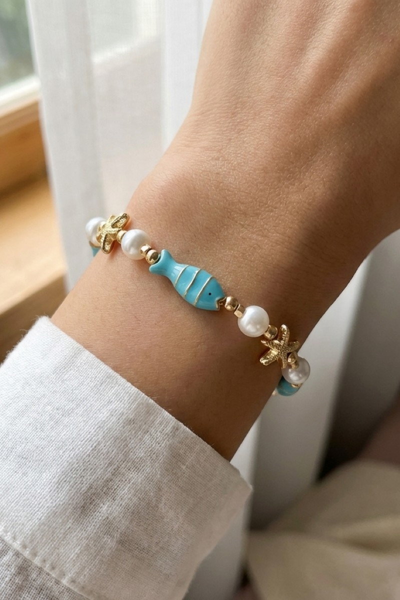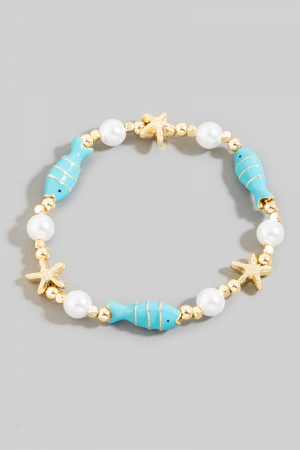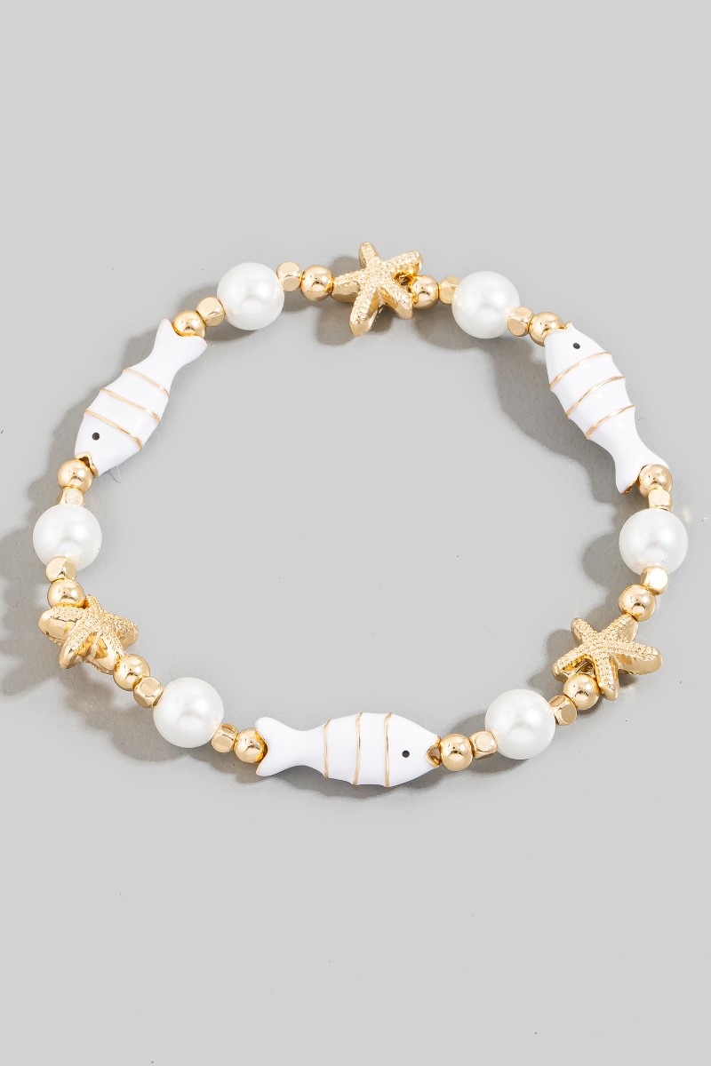 - This chain bracelet displays a fashionable ceramic fish pearl and starfish style. Immerse yourself in the details of design, as this chain bracelet effortlessly becomes a conversation starter.