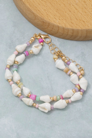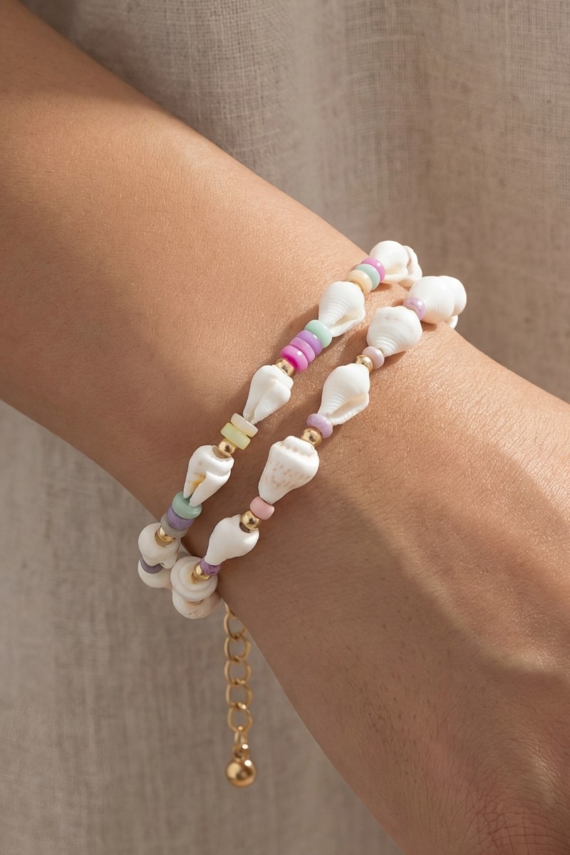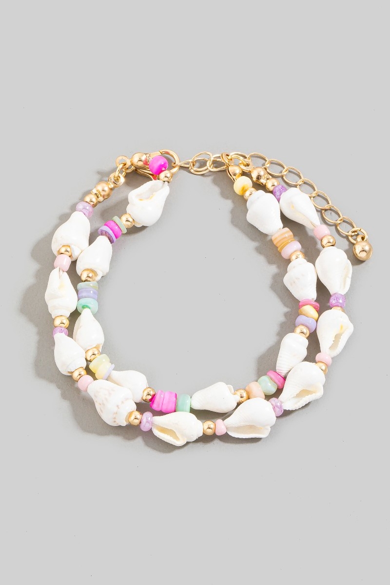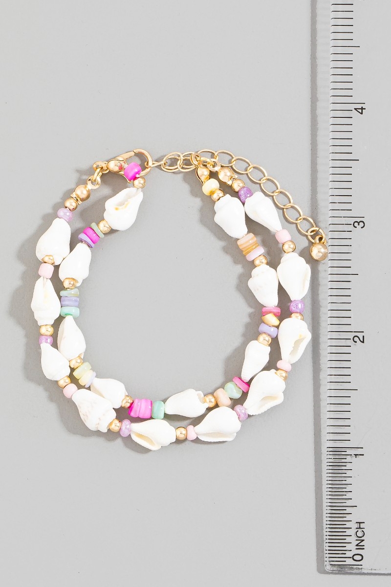 - This bracelet showcases a unique colorful disc and sea shell beads style. Embark on a journey of sartorial refinement as this bracelet effortlessly complements your fashion sense.