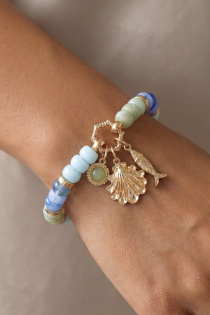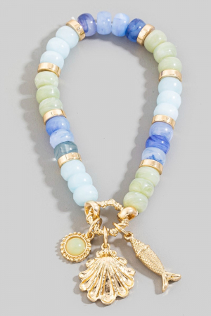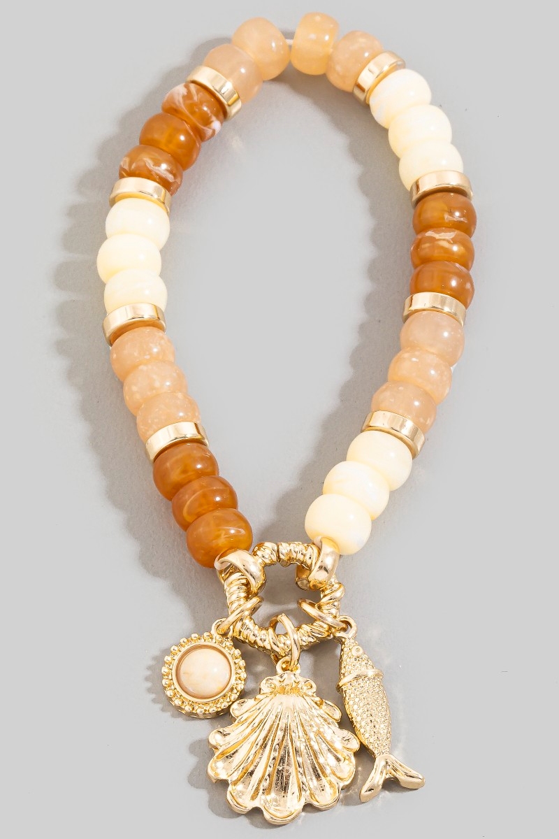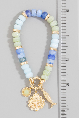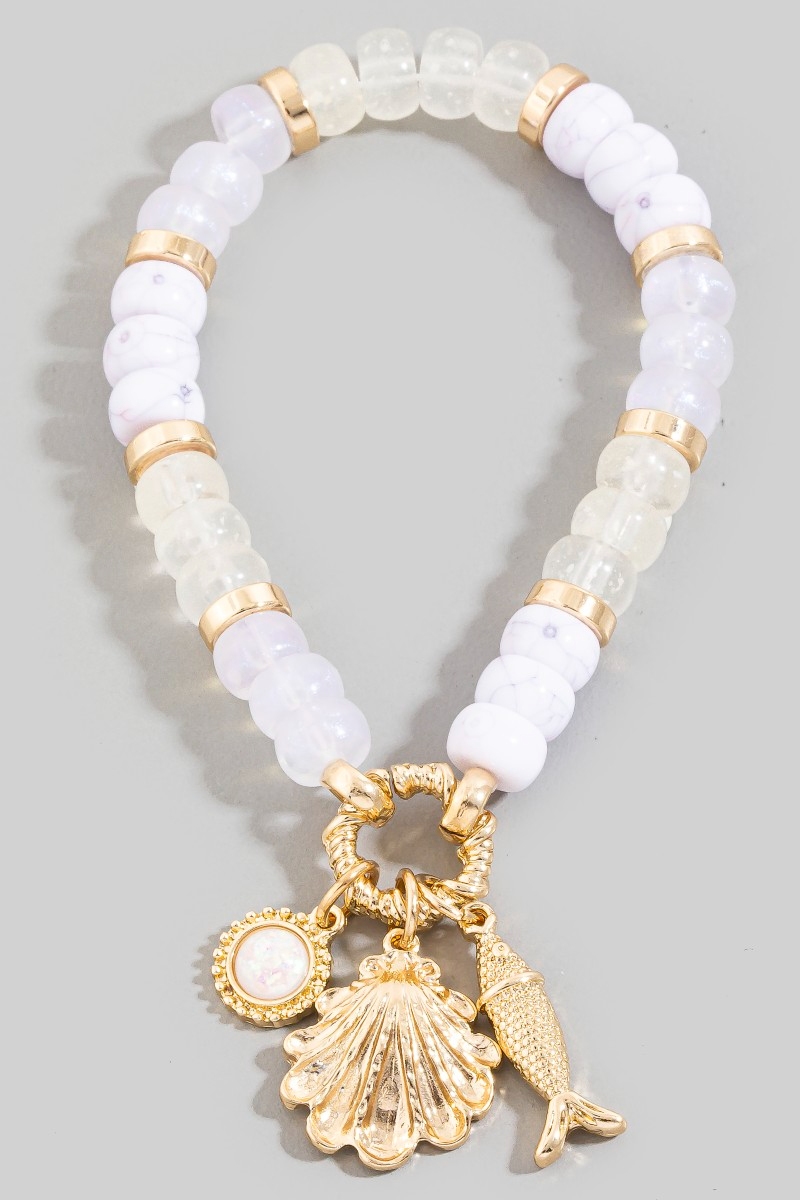 - This bracelet showcases a timeless fish leaf and opal charms beaded style. Indulge in the artistry of accessorizing with this unique piece.