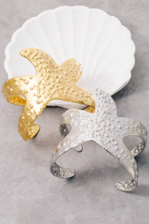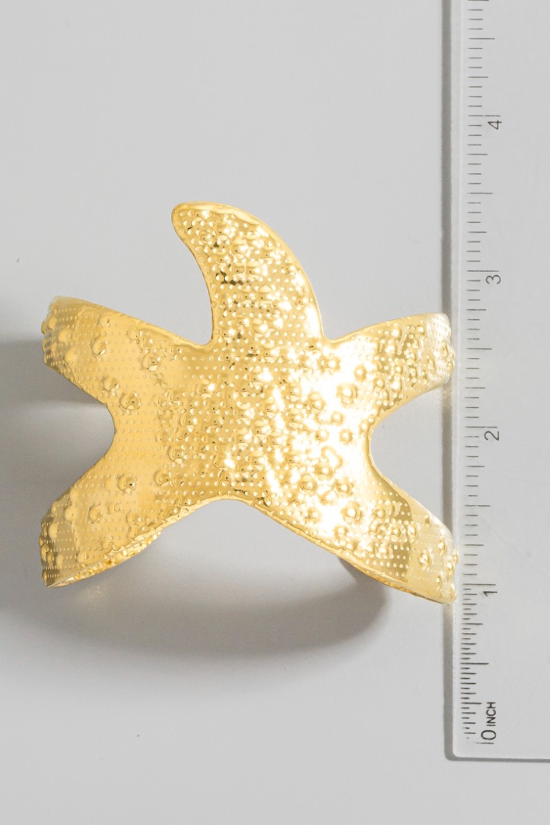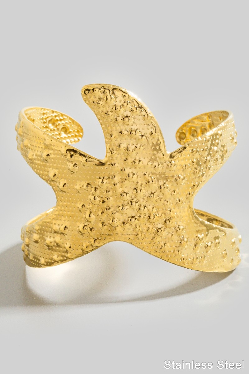- This cuff bracelet displays a vibrant stainless steel large textured starfish style. Delight in the intricate details that make this cuff bracelet an essential element in expressing your fashion identity.