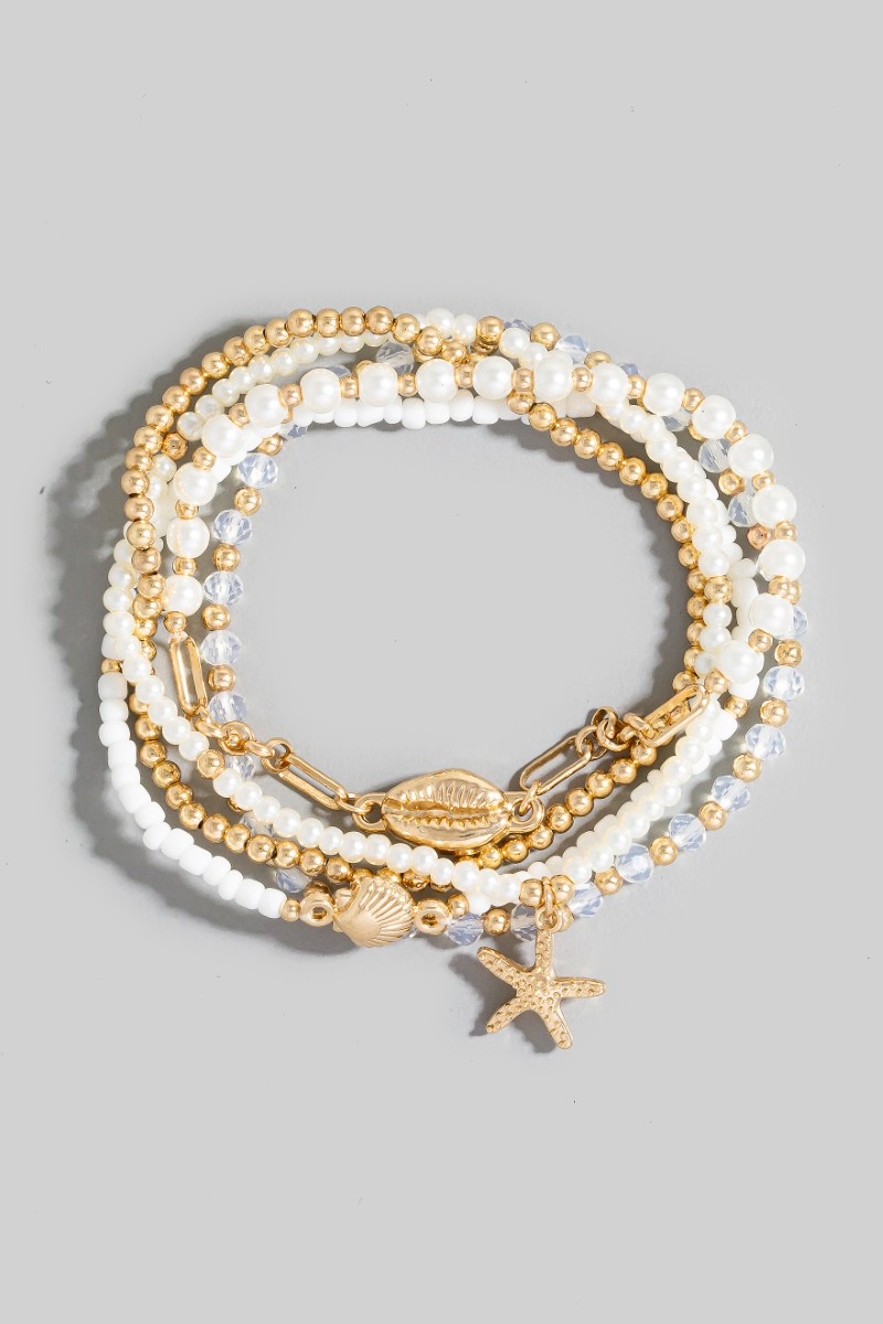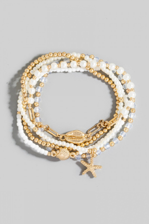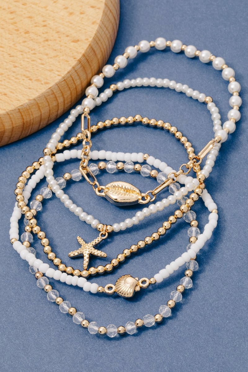 Pearl And Starfish Charms Mixed Beaded Bracelet Set