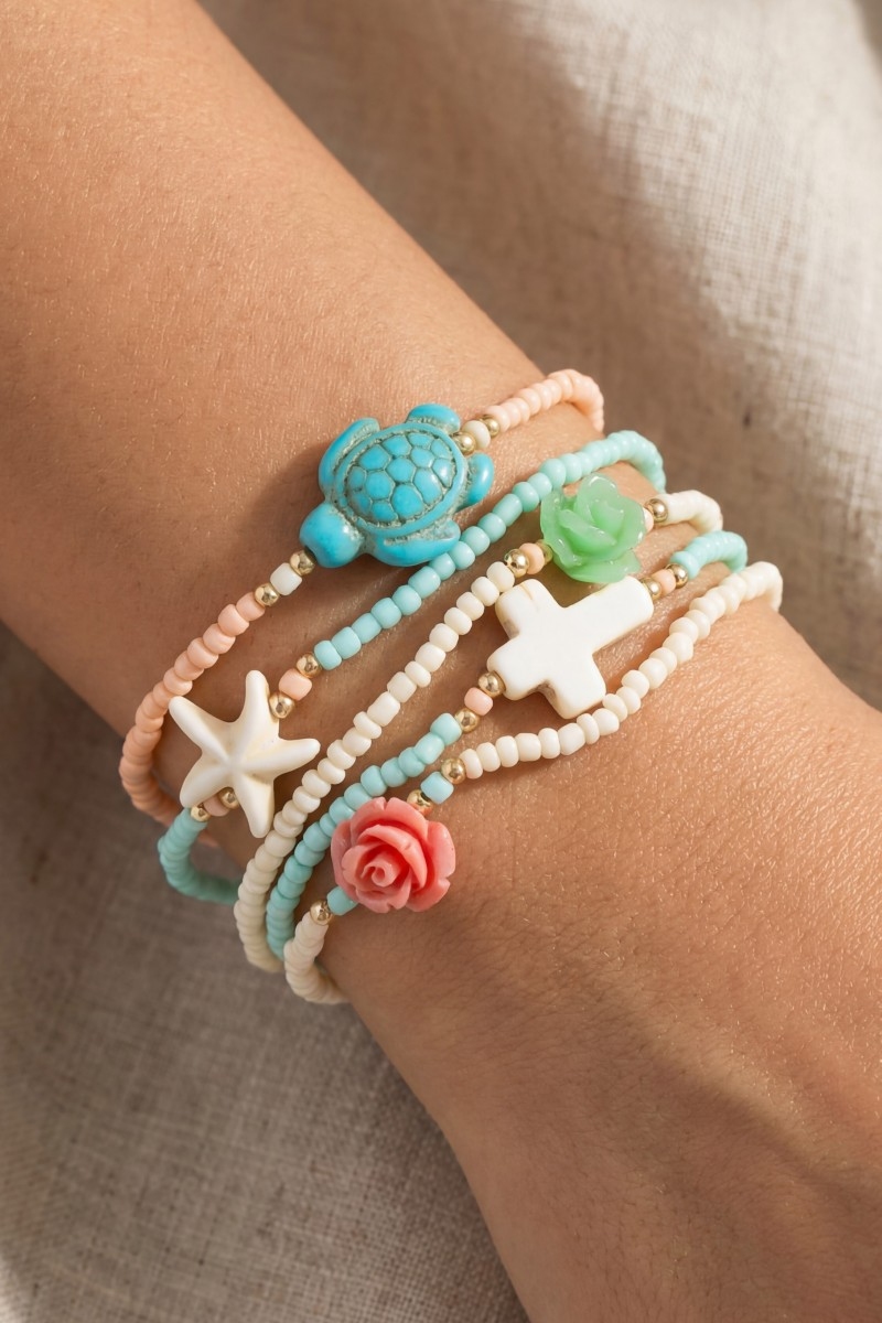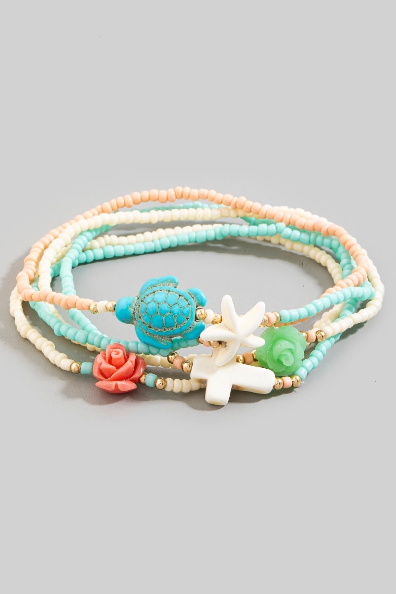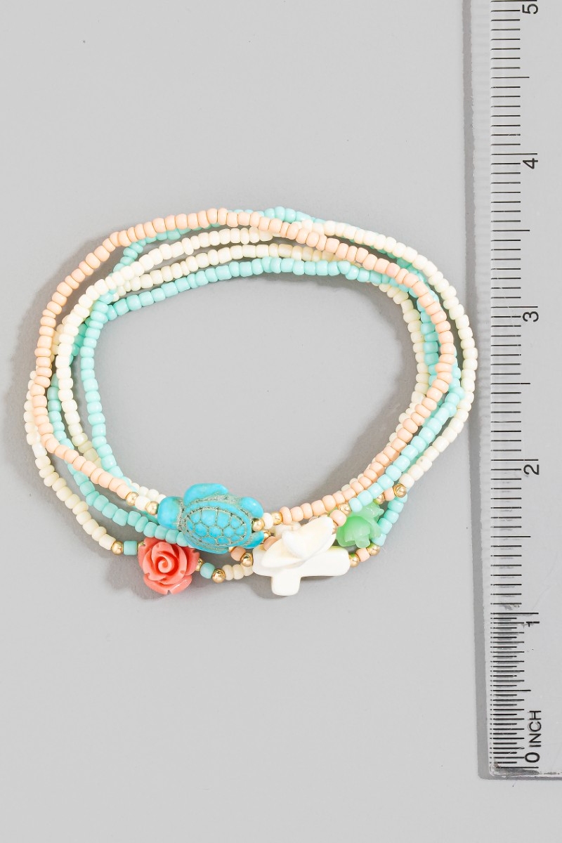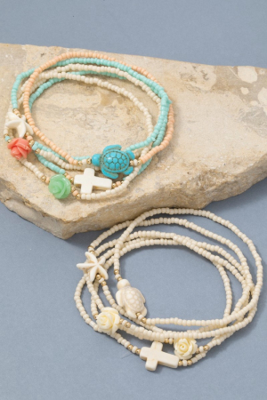 - This bracelet adds a modern cross and sea life charms mixed beaded set style. Savor the craftsmanship that goes beyond the ordinary, as this bracelet effortlessly captivates attention.