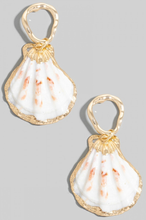Metallic Accent Sea Shell And Fridge Stud Dangle Earrings