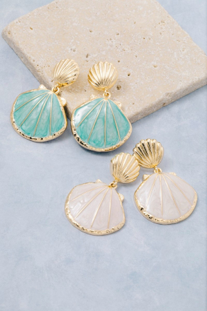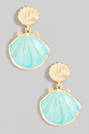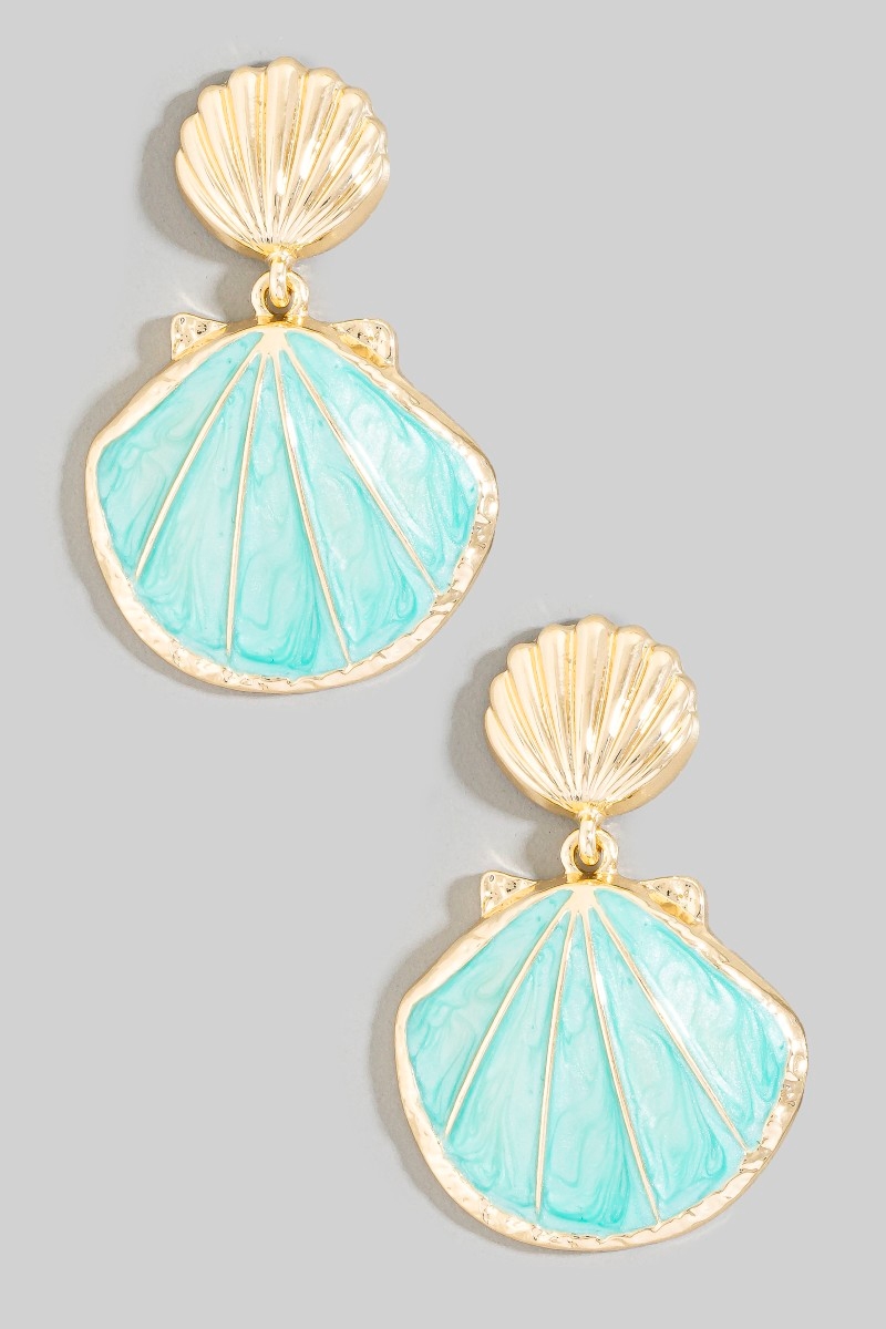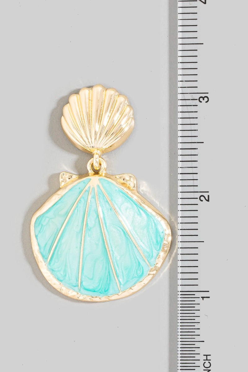 Metallic Accent Sea Shell And Fridge Stud Dangle Earrings