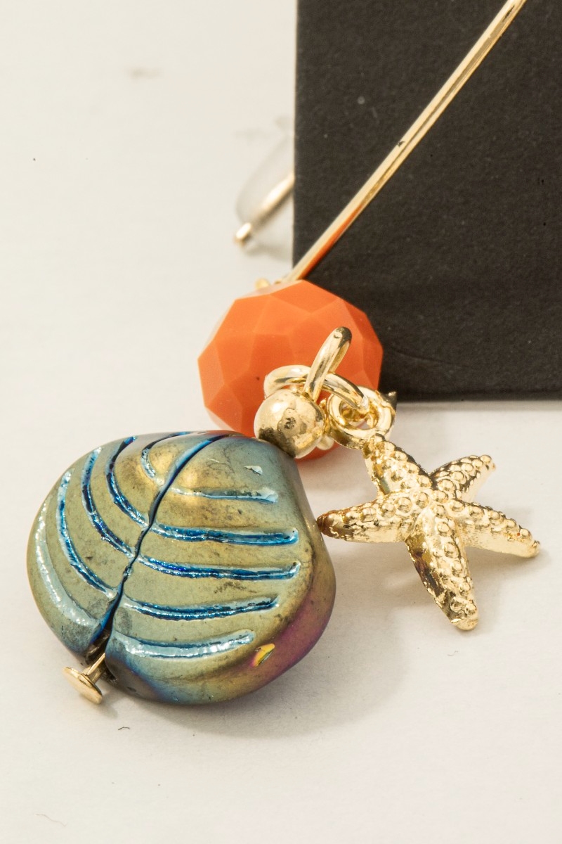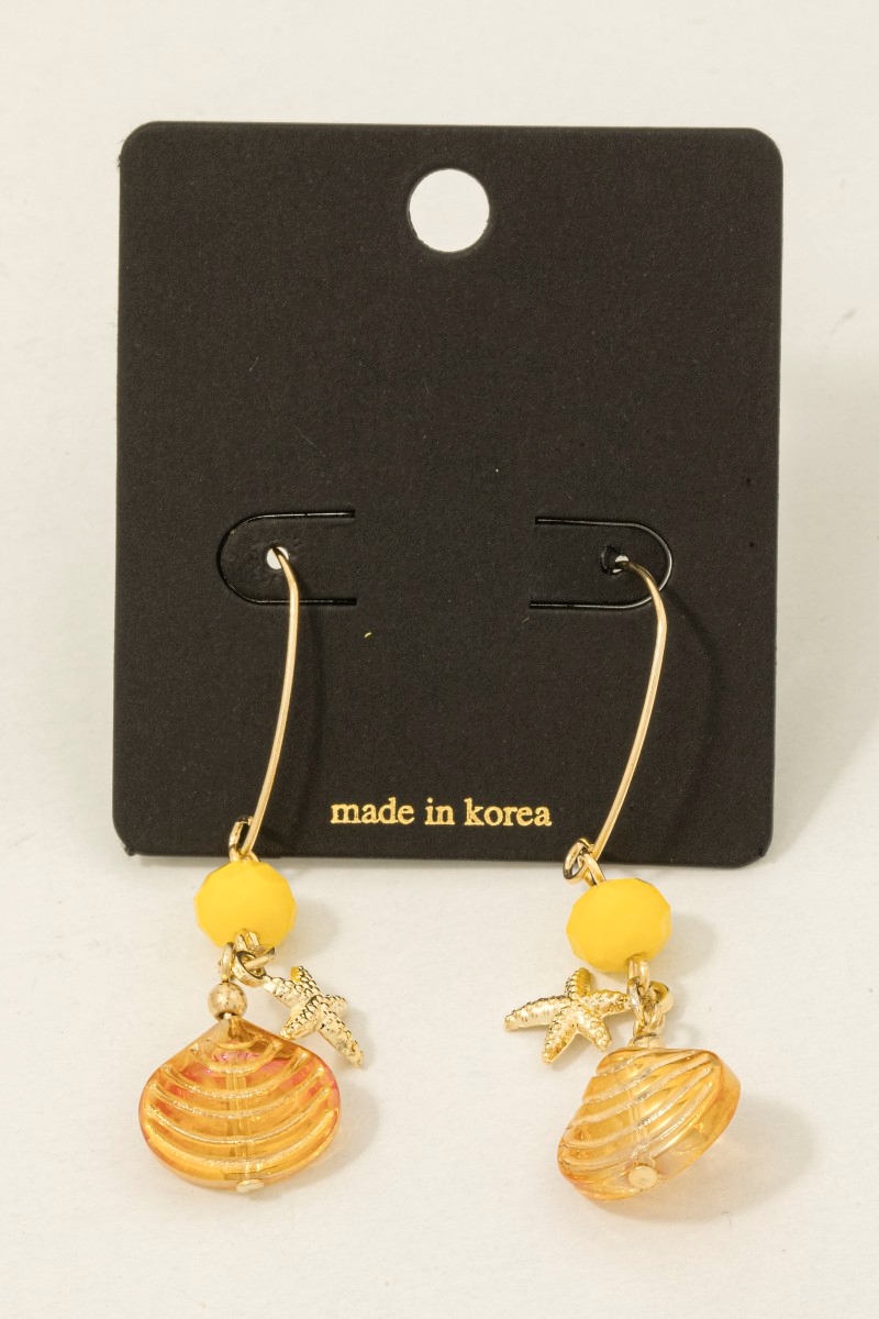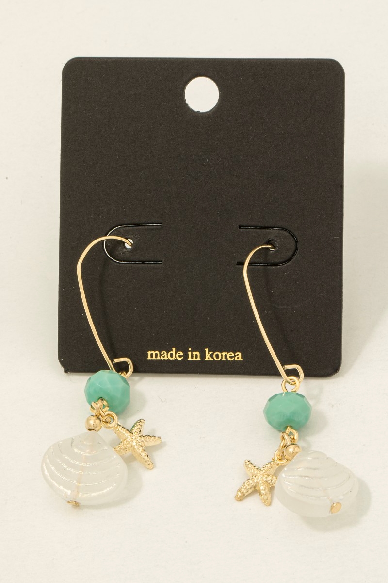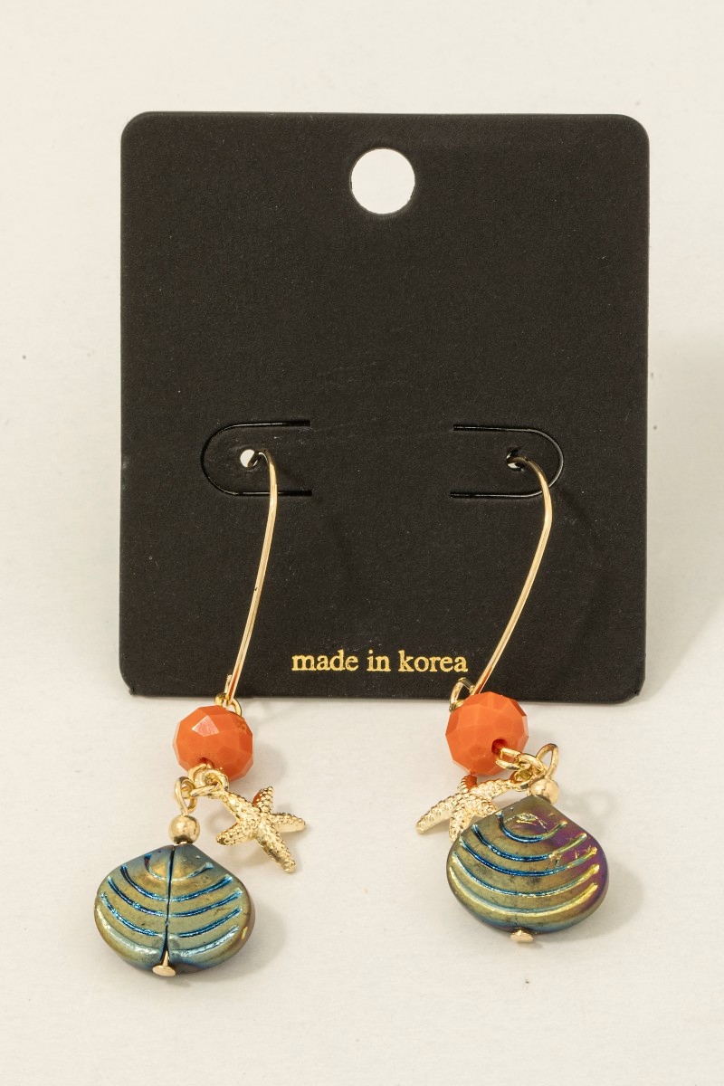 • This pair of dangle earrings features a fashionable faceted bead star fish and clam shell style. Discover the perfect balance of subtlety and flair as this pair of dangle earrings effortlessly completes your look.