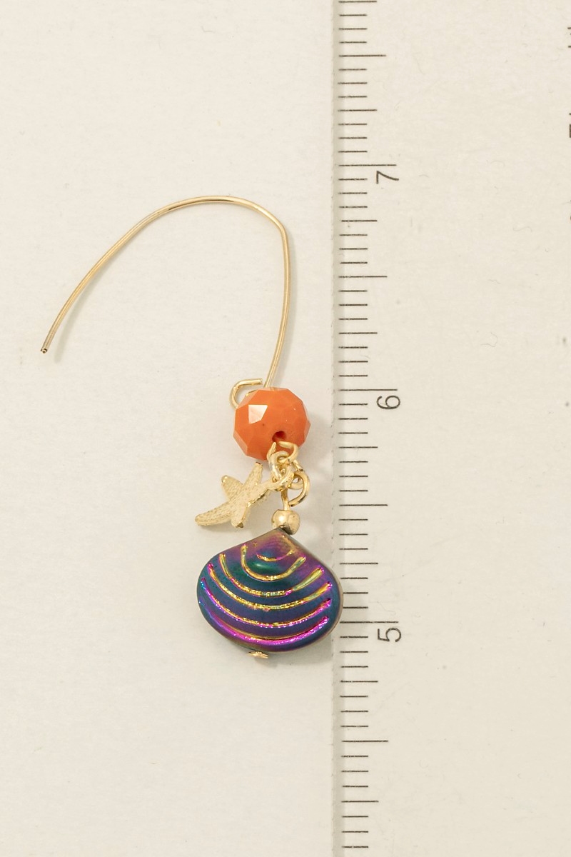 Metallic Accent Sea Shell And Fridge Stud Dangle Earrings