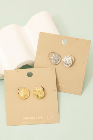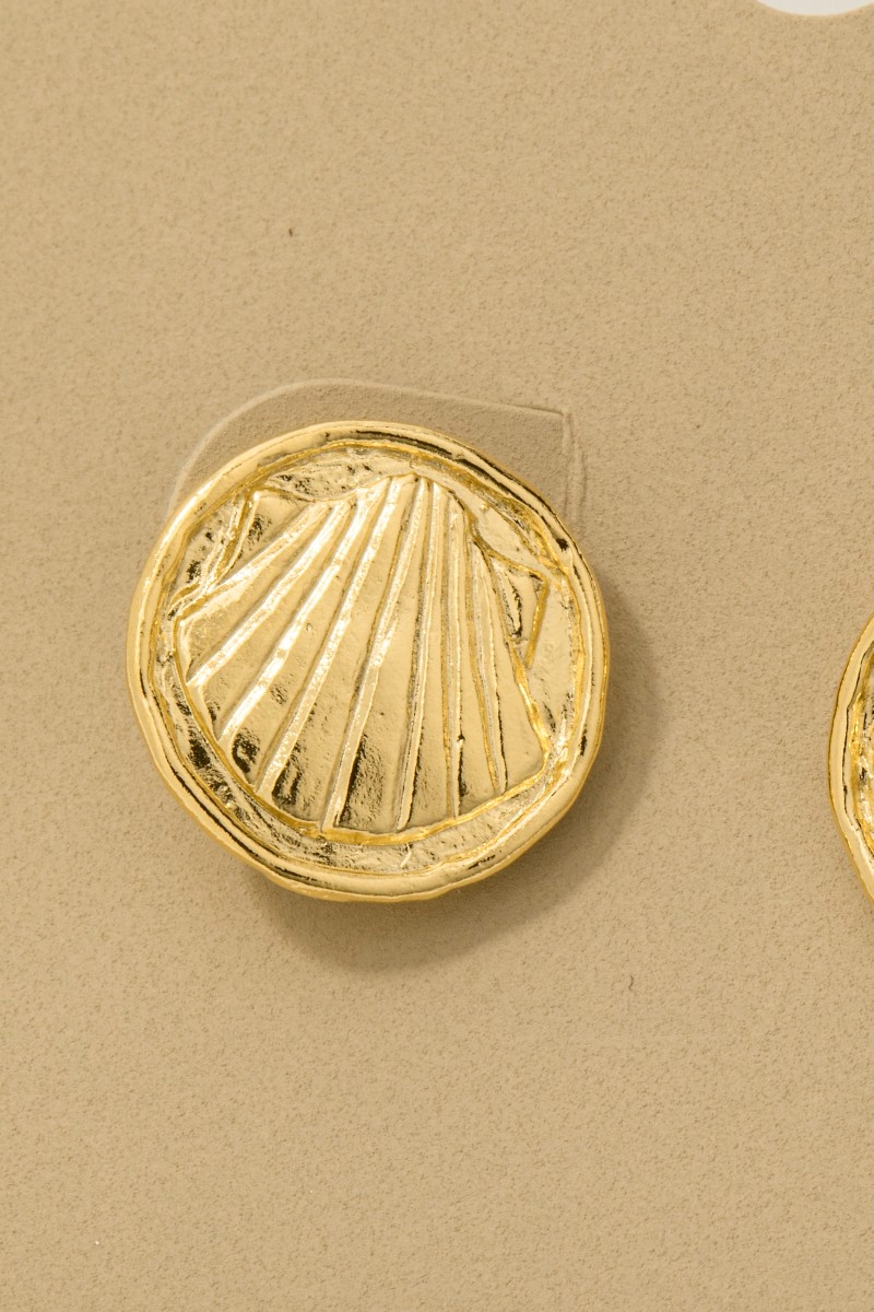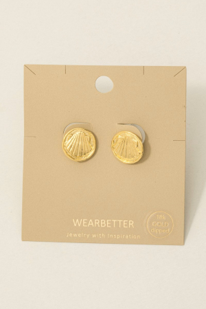 - This pair of stud earrings features a fashionable gold dipped clam shell stamped coin style. Discover the perfect balance of subtlety and flair as this pair of stud earrings effortlessly completes your look.
