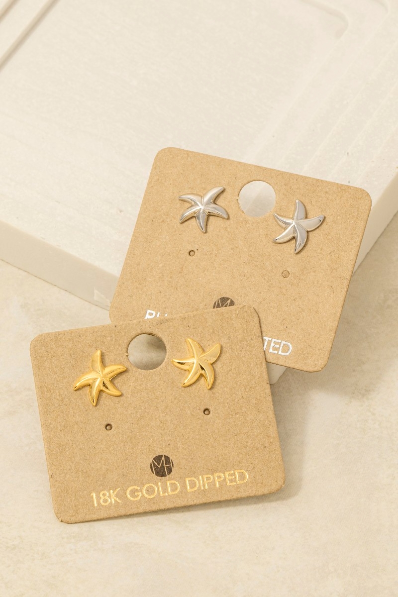 • This pair of stud earrings displays a vibrant gold dipped dainty starfish style. Step into a world of refined taste as this pair of stud earrings effortlessly refines the details of your outfit.