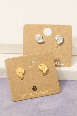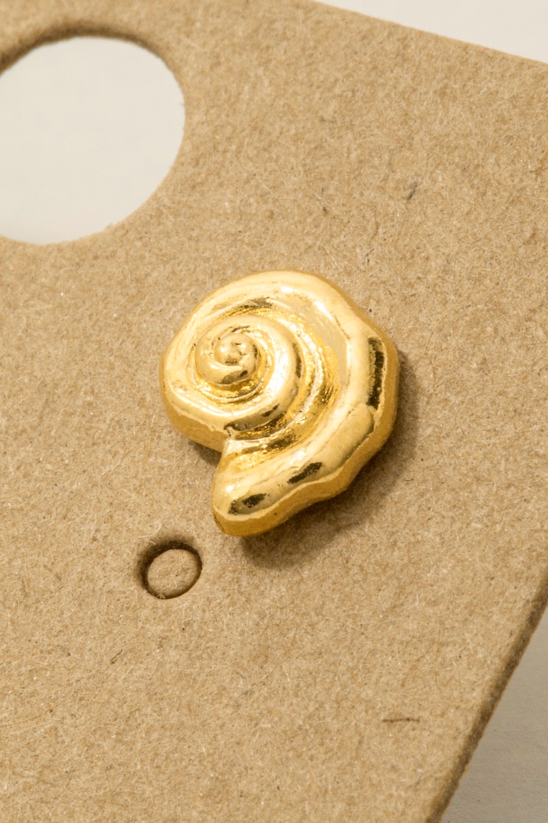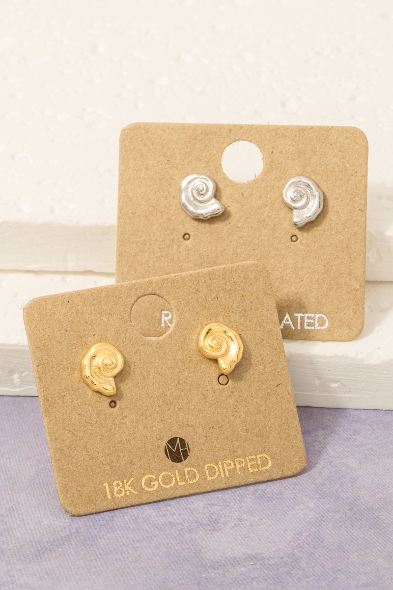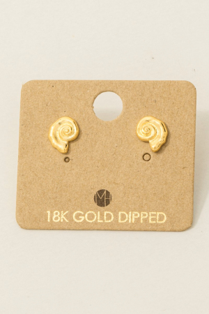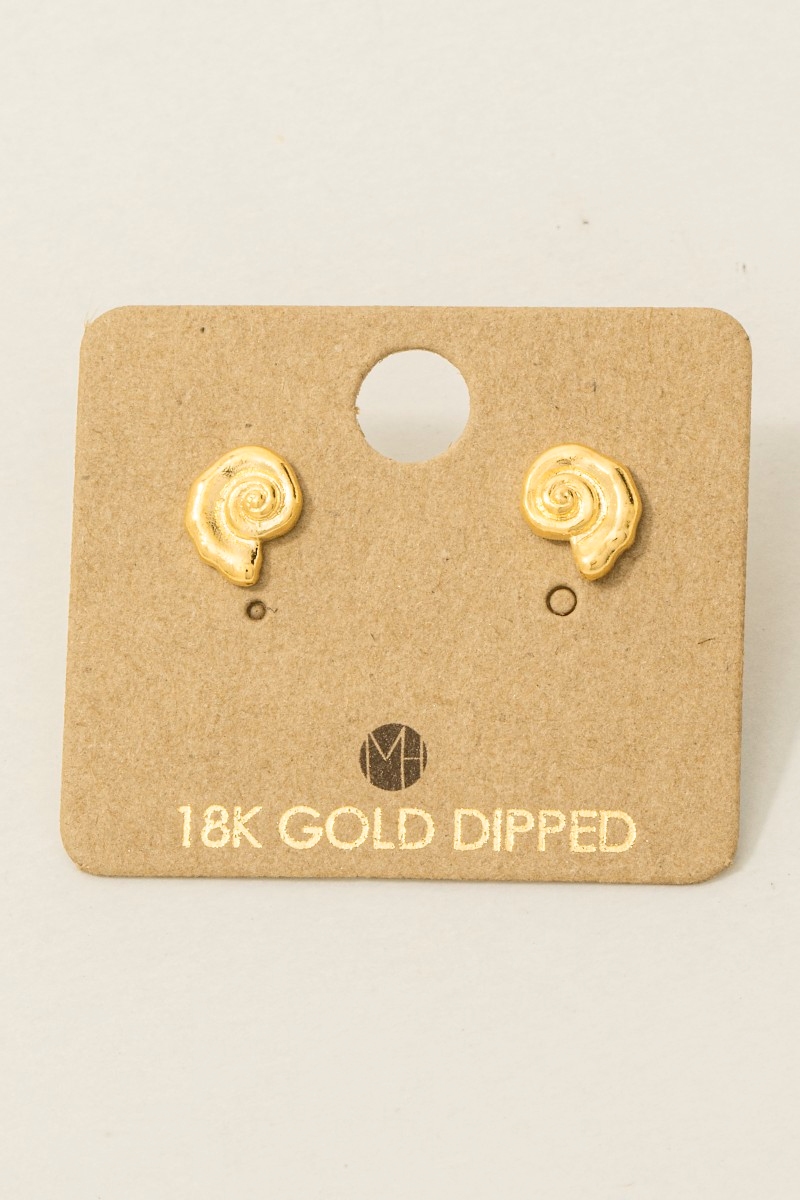• This pair of stud earrings adds a modern gold dipped spiral sea shell style. Redefine your look effortlessly with this standout, on-trend piece.