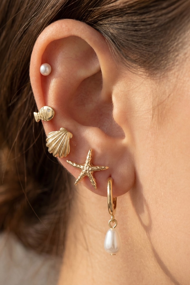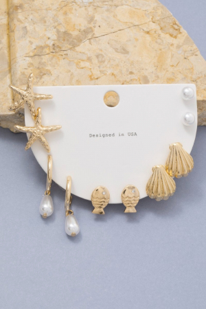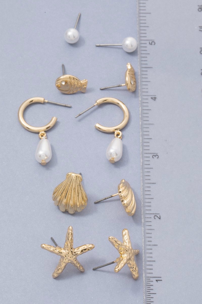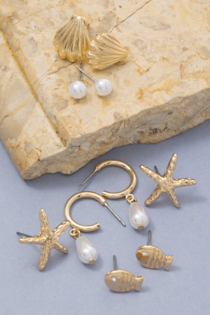 - This pair of earrings features a fashionable mixed sea life themed set style. Savor the craftsmanship that goes beyond the ordinary, as this pair of earrings effortlessly captivates attention.