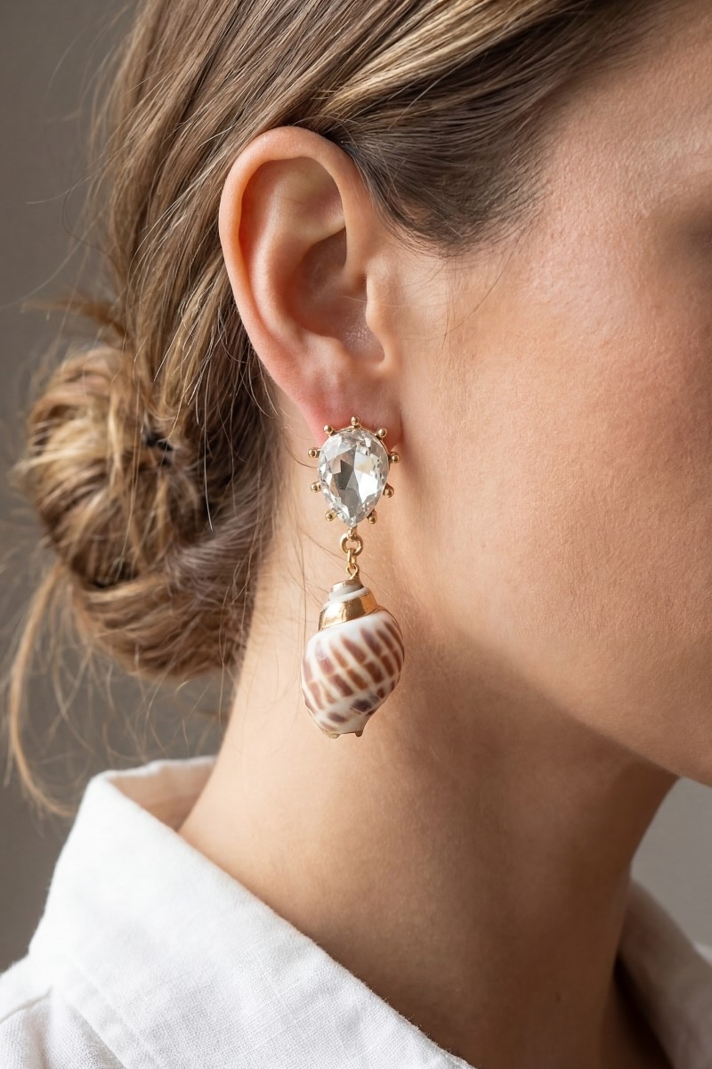 • This pair of drop earrings displays a fashionable natural seashell style. Explore a blend of classic charm and contemporary flair.