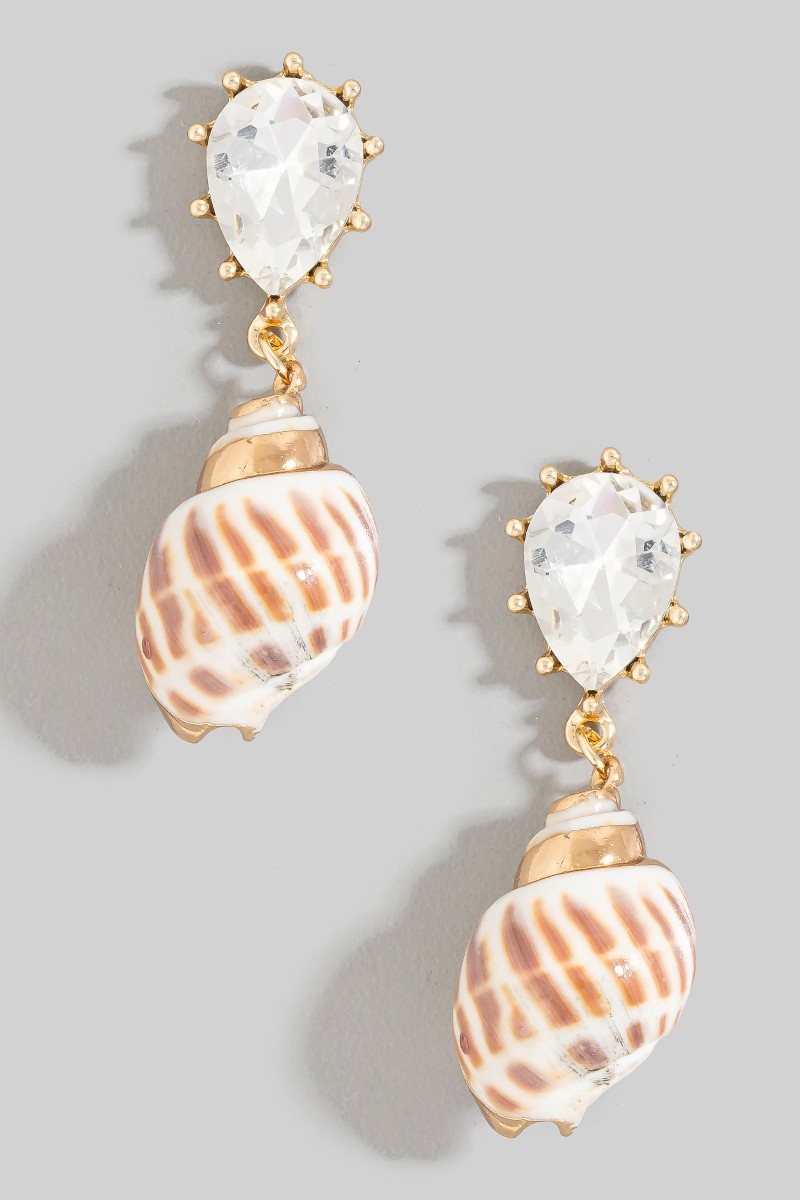 Metallic Accent Sea Shell And Fridge Stud Dangle Earrings
