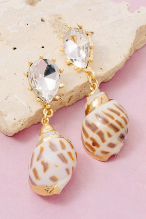 Sea Shell And Fridge Stud Dangle Earrings